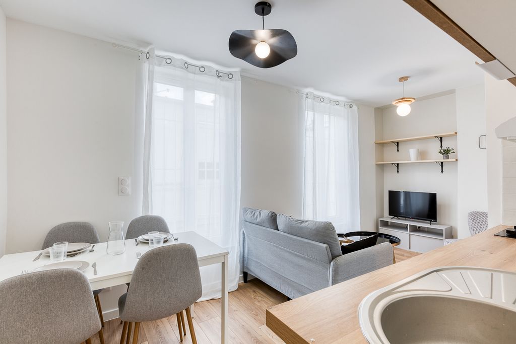 Quartier vivant et agréable, avec de nombreux restaurants, bars et magasins. View more View less Un joli appartement au premier étage, ce logement meublé type 1 bis idéalement situé au cœur du quartier animé de la Rue du Moulin Joly, dans le 11ème arrondissement de Paris. Cet appartement a été entièrement rénové par un architecte, offrant un cadre de vie moderne.Proximité des transports : Métro Ligne 9 et 2, bus et commerces à quelques pas.