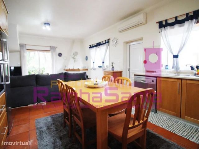 Magnifica moradia com três quartos com roupeiros, duas casas de banho, sendo uma delas com banheira, sala estar, cozinha mobilada e equipada com placa de indução, forno elétrico, exaustor, máquina de lavar louça, micro-ondas, frigorifico e lareira e sótão amplo. Com entrada independente temos ainda um escritório