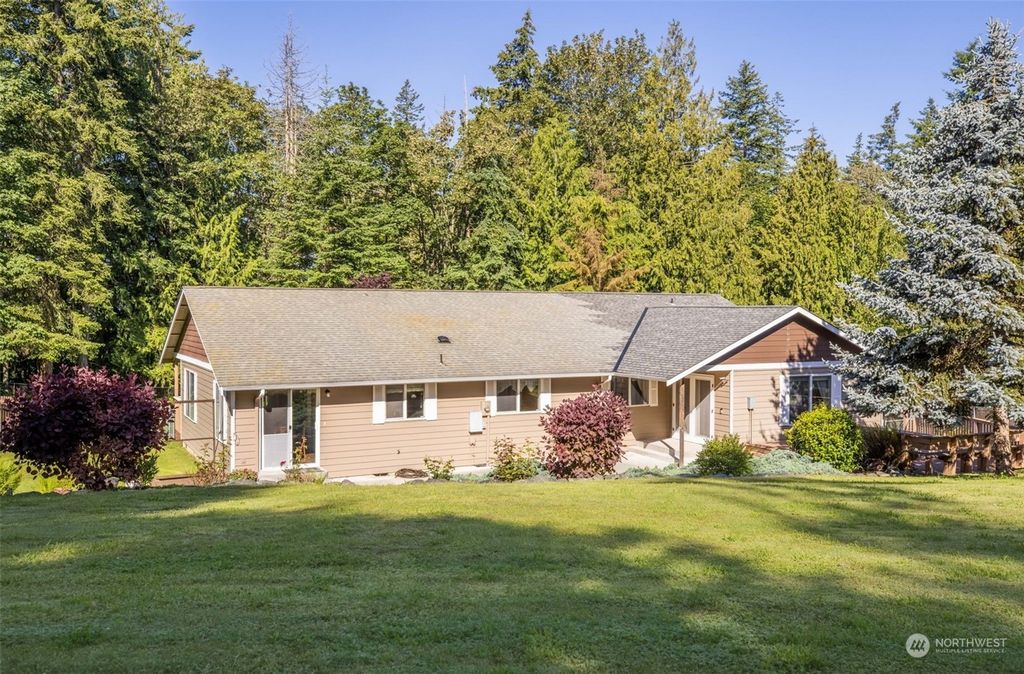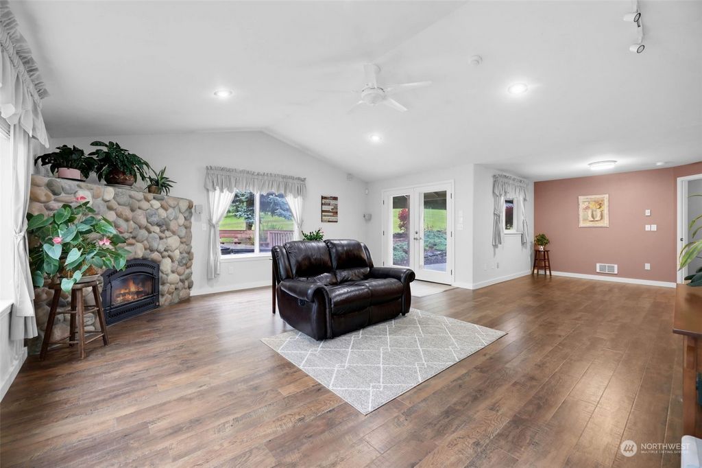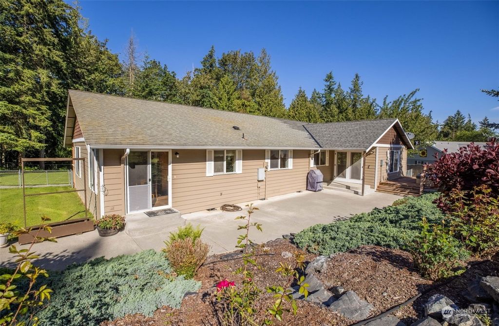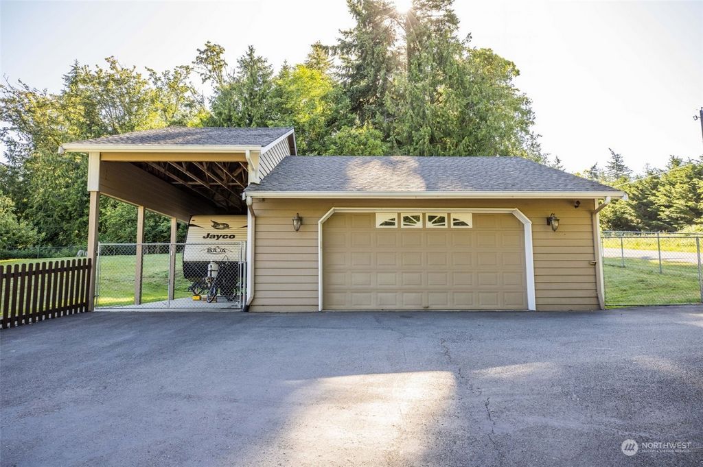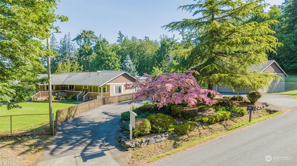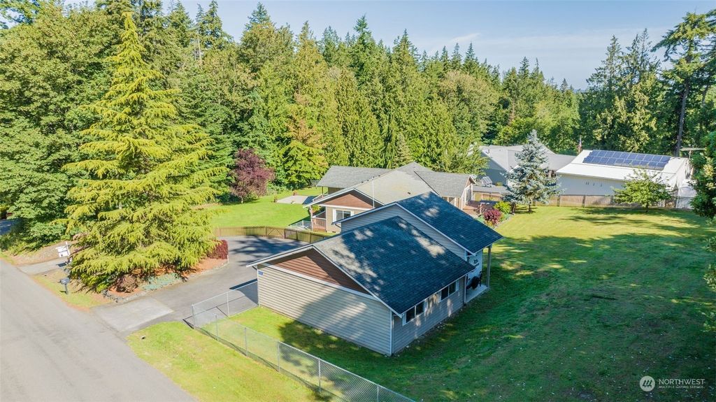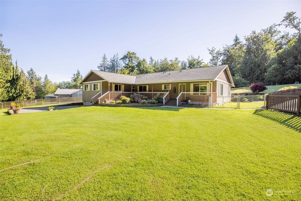 Welcome to this spacious rambler situated on over 1.5 acres. As you approach, you are greeted by a covered front porch, perfect for enjoying your morning coffee. Step inside this 4 bed/3 bath home and be captivated by the inviting family room with vaulted ceilings and a stunning river rock fireplace. The open layout seamlessly flows into the back patio, ideal for entertaining or simply unwinding after a long day. Fully fenced 1-acre portion of the property features fruit trees, mature landscaping, providing a private oasis for relaxation. The circle driveway offers ample parking space, the detached garage/shop offers covered RV parking w/ 30amp outlet. This property offers the perfect blend of comfort, functionality, and outdoor beauty.