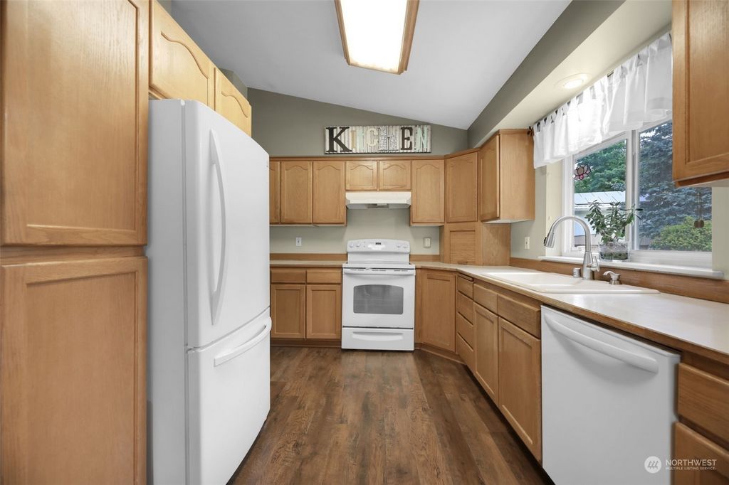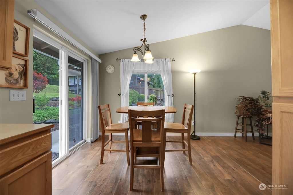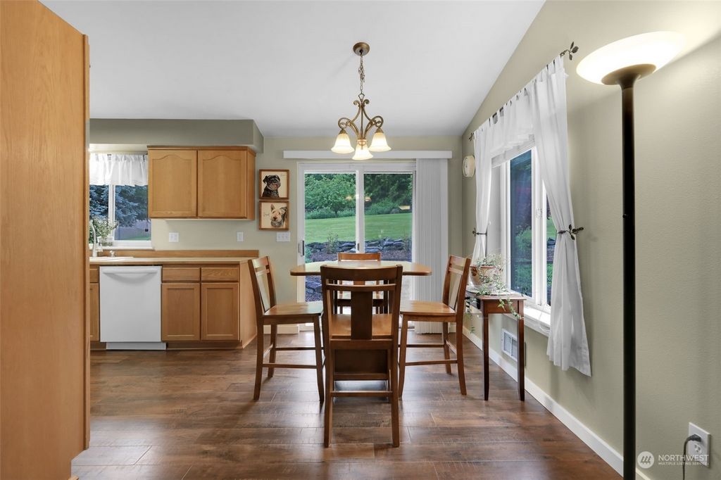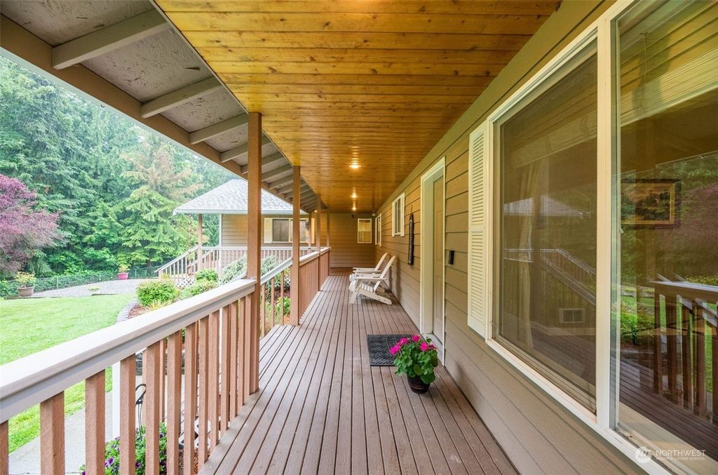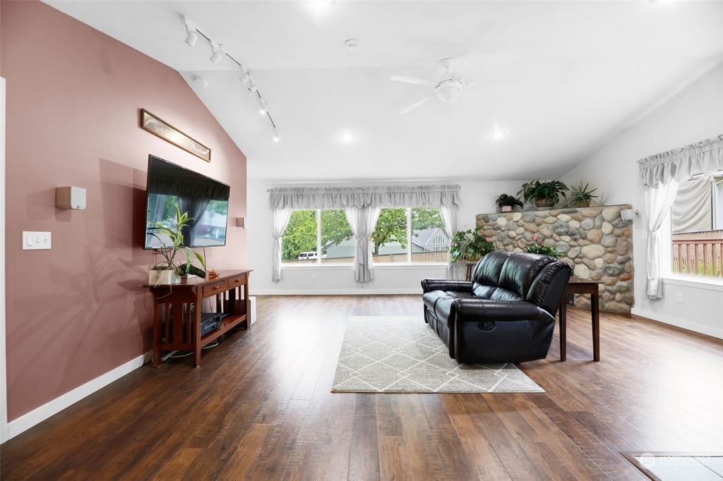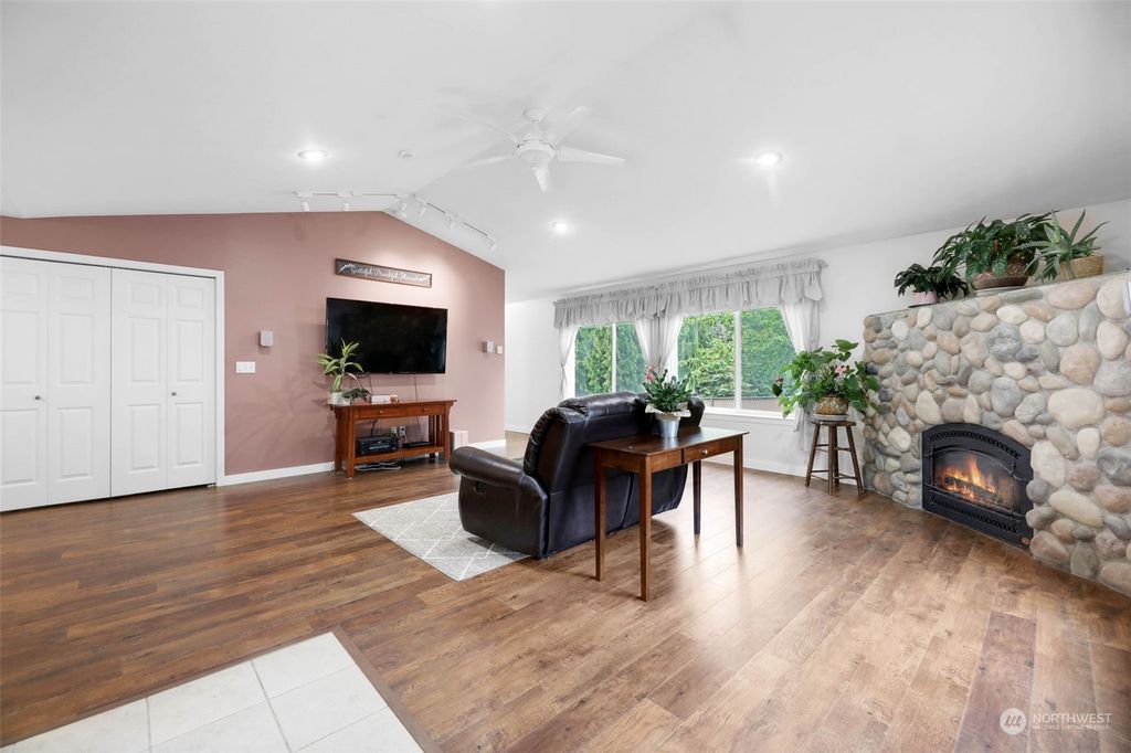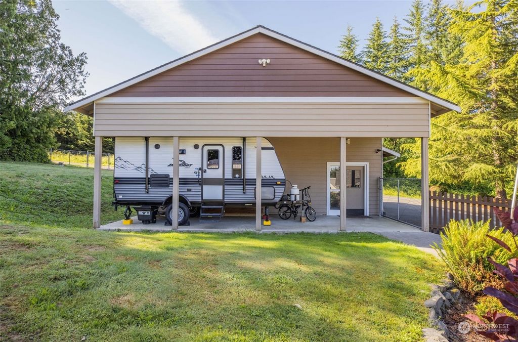 Welcome to this spacious rambler situated on over 1.5 acres. As you approach, you are greeted by a covered front porch, perfect for enjoying your morning coffee. Step inside this 4 bed/3 bath home and be captivated by the inviting family room with vaulted ceilings and a stunning river rock fireplace. The open layout seamlessly flows into the back patio, ideal for entertaining or simply unwinding after a long day. Fully fenced 1-acre portion of the property features fruit trees, mature landscaping, providing a private oasis for relaxation. The circle driveway offers ample parking space, the detached garage/shop offers covered RV parking w/ 30amp outlet. This property offers the perfect blend of comfort, functionality, and outdoor beauty.