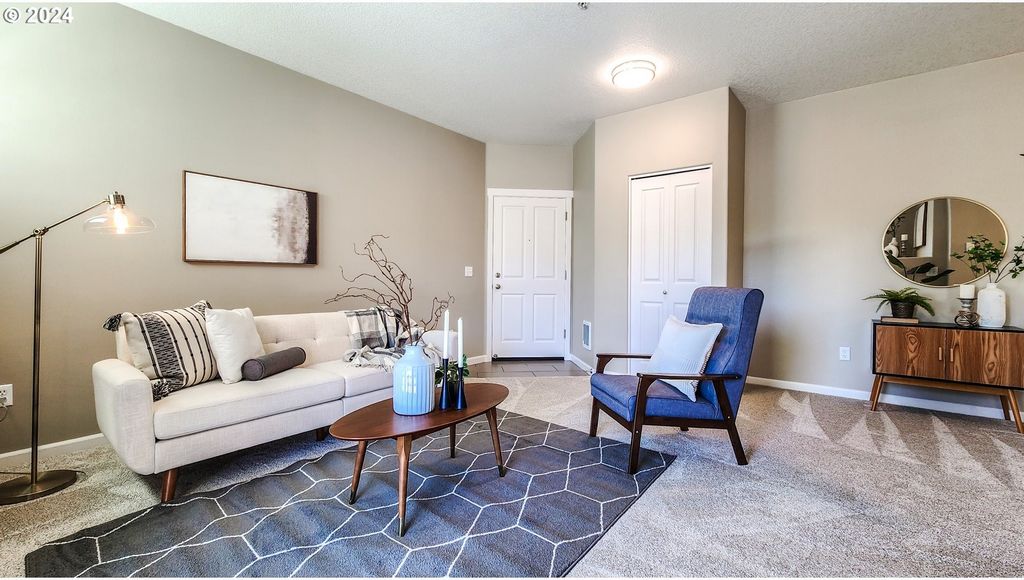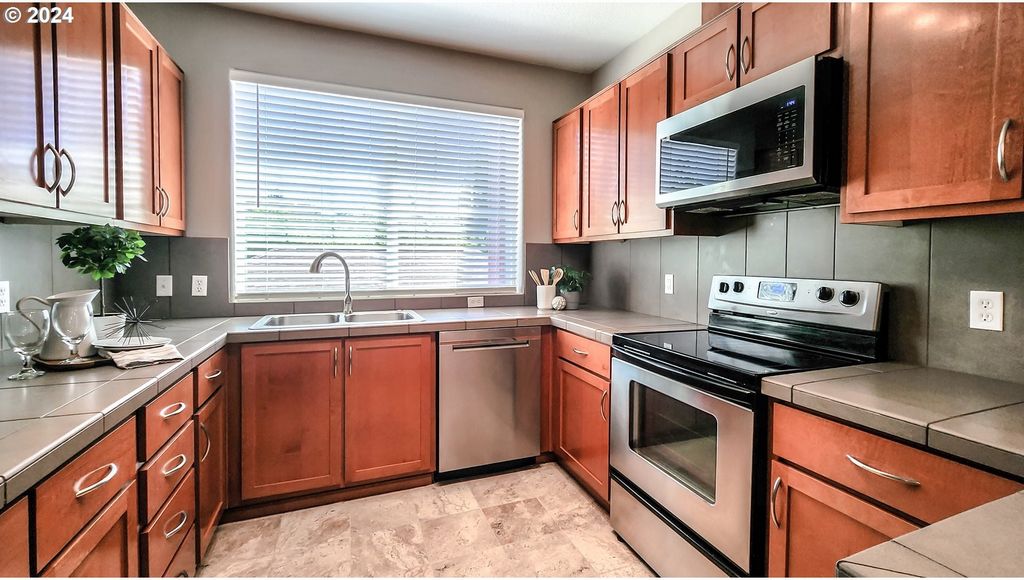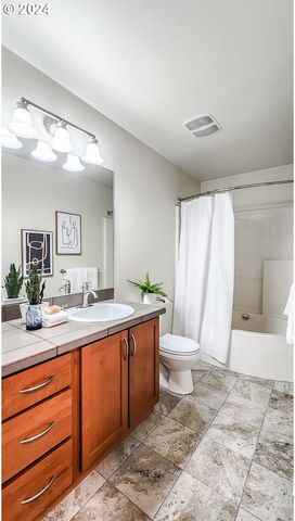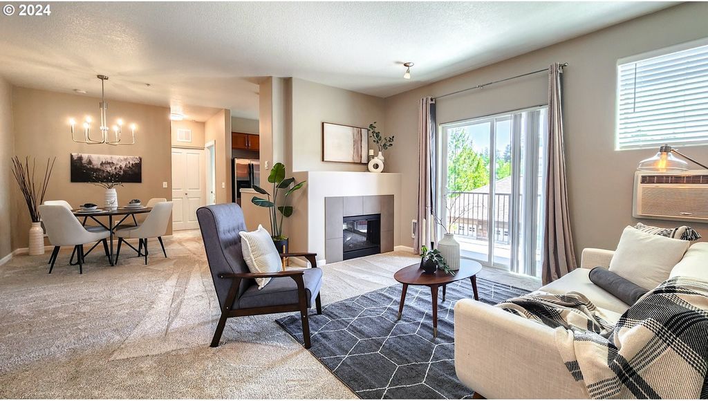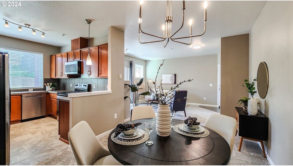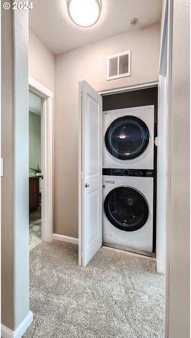 Step into convenience and comfort with this super cute, updated for you condo! Backing to Cedar Mill Creek and Cedar Mill Falls, listen to the gentle sounds of nature. Retreat to your tranquil bedroom, offering space for relaxation and rejuvenation. Cozy up on chilly evenings by the fireplace, creating a warm and inviting ambiance for memorable moments with loved ones. From the living area, step outside onto your own private, covered balcony and savor the fresh air while simply unwinding with your favorite beverage. Conveniently park your vehicle in the detached garage, providing added security and storage space for your belongings. Updated stainless steel dishwasher and microwave. Updated tile flooring and carpet throughout as well as fresh interior paint. One year old stacked washer and dryer included, LG ThinQ System. Plenty of cabinet space and linen storage. Natural light fills the living spaces, creating a bright and airy atmosphere throughout. Enjoy the area of Timberland neighborhood with walking paths and playgrounds, Tumwater Middle School, Market of Choice, shops and restaurants all in close proximity. Bus stop, Max station, Nike, Intel, Columbia Sportswear, St. Vincent Hospital and access to Hwy 26.