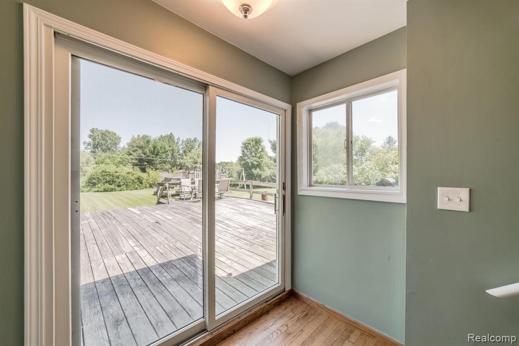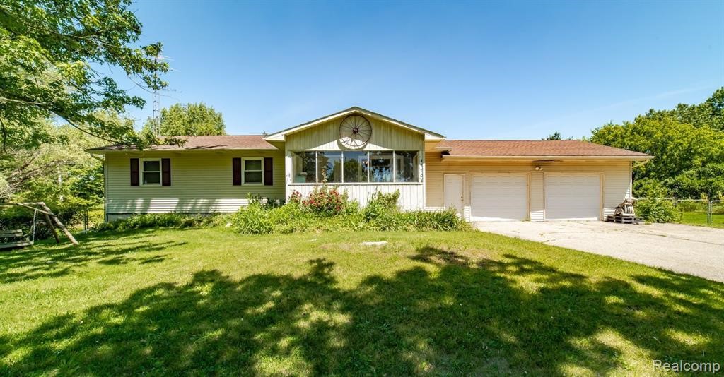 Looking for a country setting with some room to breathe? You've found it! Nestled on a picturesque 2.49-acre lot, this charming ranch-style residence offers a perfect blend of rustic charm and modern amenities. Step into the delightful 3-season porch, where you can enjoy your morning coffee or relax with a good book while taking in the serene surroundings. The heart of this home is the huge eat-in kitchen, a chef's paradise featuring a Jenn-Air cooktop, double ovens, two pantry cabinets, and a newer stainless steel fridge. The beautiful wood floors add warmth and character to the space, making it ideal for both everyday living and entertaining. The primary suite boasts wood floors and a bath with a large walk-in shower. Two other bedrooms and another full bath complete the upstairs living space. The finished lower level expands your living space with a full bath, a cozy family room perfect for movie nights or gatherings, and a unique cellar room ideal for home canned goods, produce storage or a wine collection. Outside, the massive fenced backyard is a nature lover's paradise. Watch deer, rabbits, and other wildlife roam freely from the massive deck. The property also includes a fenced garden and a chicken coop, adding to the rustic appeal and offering the potential for fresh eggs daily. Don't miss this opportunity to own a piece of tranquility with all the conveniences of modern living. Extras include a whole house generator and an attached oversized 2.5 garage. This adorable ranch home is waiting for you! See the 3D tour for a virtual walk-through or schedule a private showing today! Paved road is 400' away.