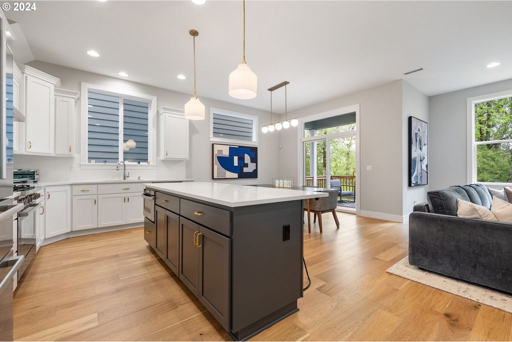 Nestled in the serene Finnley Woods Community in North Bethany, this Noyes development farmhouse-style home backs to lush protected greenspace, offering a harmonious blend of modern living and eco-conscious design. Earth Advantage Platinum+ and Energy Star certified, this sustainable oasis features an open floor plan, gourmet kitchen, and a luxurious primary suite. Enjoy the high ceilings throughout and room for many, with 6 total bedrooms. Escape to the lower level with a separate living space and access to the largest backyard in the development. Finish off your day from your main level deck, listening to the birds and watching the deer pass by. This is one you don't want to miss!