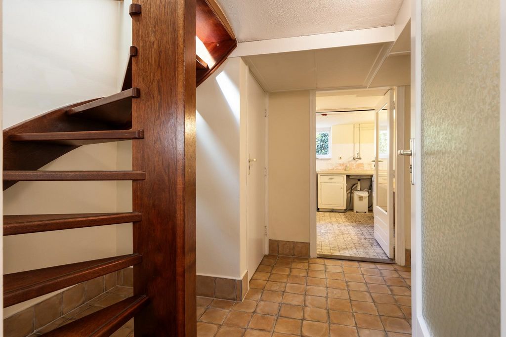 Au premier étage, le palier dessert deux chambres spacieuses et une luxueuse salle de bains. La grande chambre principale à l’avant est une oasis de tranquillité et dispose d’une porte menant à une spacieuse terrasse sur le toit avec une vue magnifique sur l’Oranjepark. La deuxième chambre, avec de l’espace pour un lit double et une grande armoire, a une atmosphère chaleureuse avec beaucoup de lumière. La luxueuse salle de bains a été récemment rénovée et dispose d’une douche à l’italienne, d’une double vasque, d’un grand miroir avec éclairage, de toilettes suspendues et d’un bidet. Un 3ème WC moderne sur le palier complète cet étage. Un escalier fixe mène au deuxième étage où se trouvent trois autres chambres. L’un d’entre eux peut accueillir un lit simple. Les autres chambres sont spacieuses et offrent suffisamment d’espace pour un lit double, tandis que les plafonds bas et les charmantes fenêtres contribuent à une atmosphère calme et confortable. Sous-sol et utilisation polyvalente