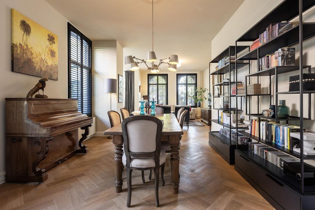 La mezcla especial de encanto histórico, confort contemporáneo y arquitectura única hace de esta villa una casa especial que debe ser vista para experimentar realmente su espacio y atmósfera. Los cálidos espacios de vida, las características de época cuidadosamente conservadas y las comodidades modernas se combinan para crear una experiencia de vida única. Le invitamos a visitar y experimentar por sí mismo lo que hace que esta villa de la ciudad sea tan especial. Ta ekskluzywna, czterokondygnacyjna wolnostojąca willa miejska z antresolą łączy w sobie stylową monumentalną historię z klimatycznymi przestrzeniami mieszkalnymi i współczesnym komfortem. Położona na pięknym rogu ulic Kerklaan i Mr van Rhemenslaan, willa wychodzi również na Oranjepark. Unikalny układ willi pozwala na wykorzystanie jej na wiele sposobów, od przestronnego domu rodzinnego po domowe biuro. Styl i historia