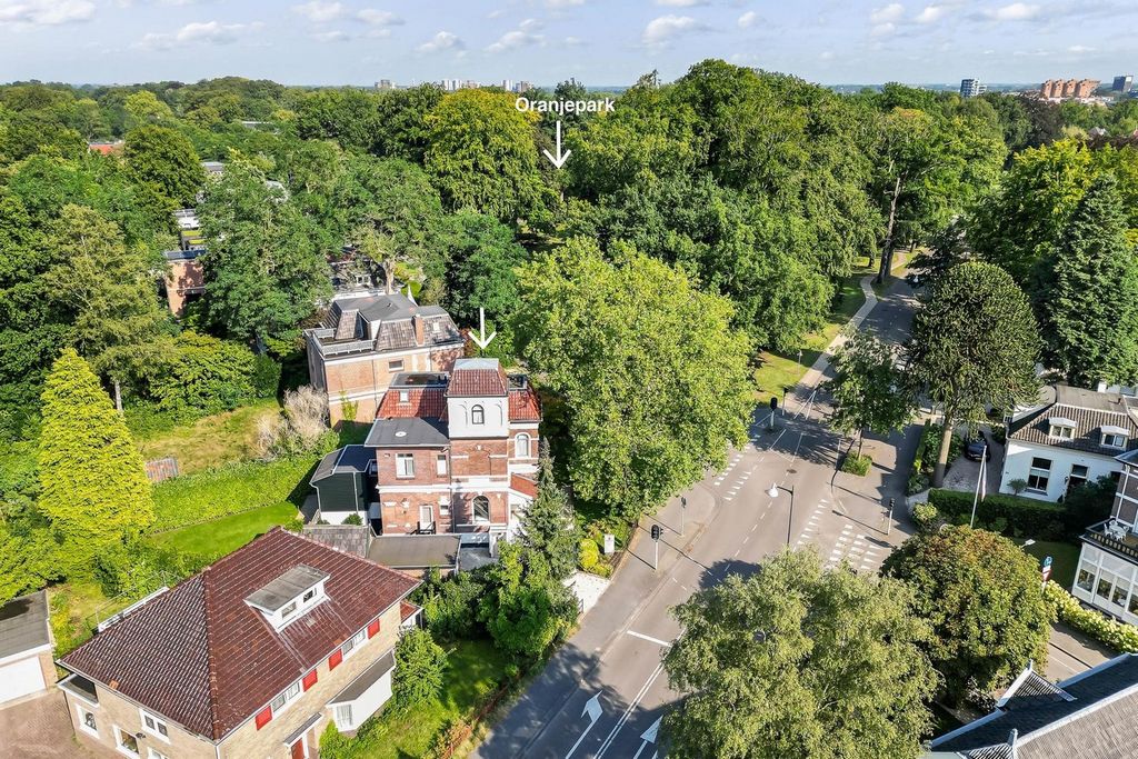 The special blend of historic charm, contemporary comfort and unique architecture makes this villa a special home that must be seen to truly experience its space and atmosphere. The warm living spaces, carefully preserved period features and modern amenities combine to create a unique living experience. You are more than welcome to visit and experience for yourself what makes this city villa so special. View more View less Deze exclusieve vrijstaande stadsvilla met vier etages, waaronder een verhoogde woonetage, combineert een stijlvol monumentale historie met sfeervolle leefruimtes en hedendaags comfort. De villa, gelegen op een prachtige hoeklocatie aan de Kerklaan en de Mr. van Rhemenslaan, kijkt ook uit op het Oranjepark. Dankzij de unieke indeling biedt de villa veelzijdige gebruiksmogelijkheden, van royale gezinswoning tot inwoning of kantoor aan huis. Bouwstijl en historie
