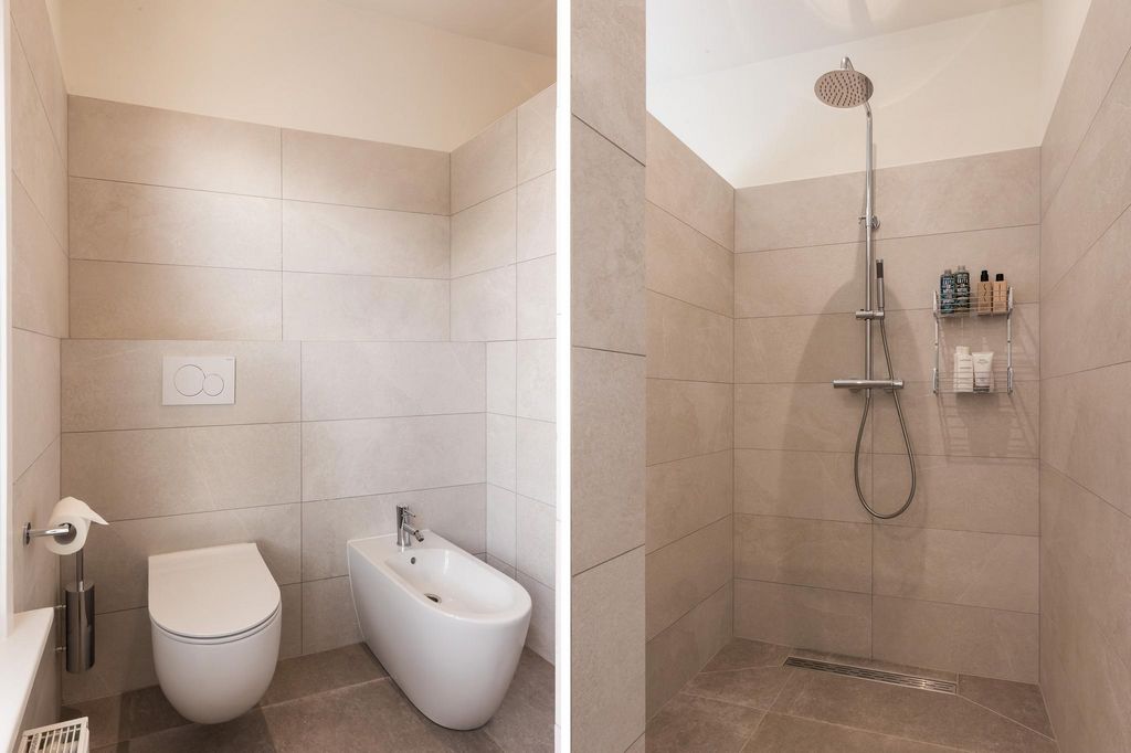 On the first floor, the landing leads to two spacious bedrooms and a luxurious bathroom. The large master bedroom at the front is an oasis of tranquillity and has a door leading to a spacious roof terrace with beautiful views over the Oranjepark. The second bedroom, with space for a double bed and a large wardrobe, has a cosy atmosphere with plenty of light. The luxurious bathroom has been recently renovated and features a walk-in shower, double basin, large mirror with lighting, wall-hung toilet and bidet. A modern 3rd toilet on the landing completes this floor.A fixed staircase leads to the second floor where there are three further bedrooms. One of these can accommodate a single bed. The other bedrooms are spacious and offer enough space for a double bed, while the low ceilings and charming windows contribute to a quiet and comfortable atmosphere.