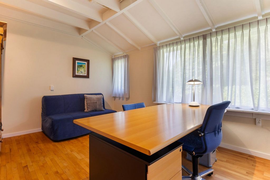 Le bureau du rez-de-chaussée et la salle d’archives/loisirs sont accessibles par un passage derrière le salon. Le bureau a des fenêtres sur deux côtés donnant sur le jardin verdoyant et offre beaucoup de paix et de tranquillité pour travailler à domicile ou pour les loisirs. Étages et chambres
