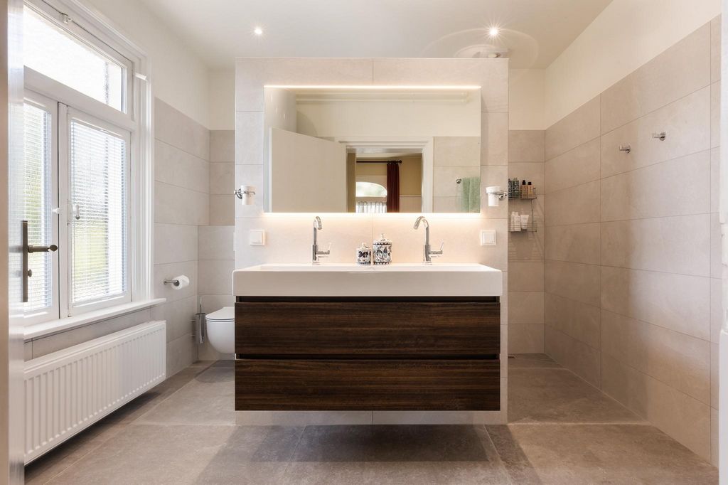 Via de brede trap en het imposante bordes bereikt u de statige entree van de villa. De hal biedt toegang tot de woonetage, de moderne toiletruimte en naar de met eikenhout afgewerkte trapopgang naar de verdieping. De riante woonkamer, aan de rechterzijde van de hal, ademt sfeer en elegantie. Hoge ornamentenplafonds, prachtig gerestaureerde details en de grote boogvormige ramen zorgen voor een bijzondere lichtinval. De gezellige zithoek nodigt uit om samen te ontspannen, terwijl de zonnige serre met deur naar de tuin een heerlijke plek is om te genieten van de ochtendzon. Met smaakvolle zwarte Shutters voor de hoge ramen heeft u de vrijheid om de lichtinval naar wens te regelen, wat zorgt voor een intieme en warme sfeer.Achter de hal ligt de ruime woonkeuken, voorzien van een witte U-vormige opstelling. De keuken is uitgerust met inbouwapparatuur; gaskookplaat, afzuigkap, vaatwasser, koelkast, vriezer en combi-oven magnetron. De eetbar verbindt de twee keukenopstellingen en biedt uitzicht op de achtertuin.