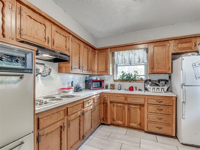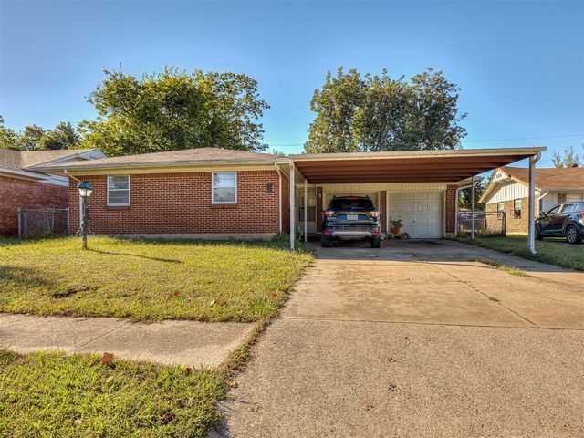 Discover this delightful 3-bedroom, 1.5-bath home spanning 1,030 sq ft. Enjoy year-round comfort with central heating and air conditioning. The spacious kitchen features a gas oven and electric range, perfect for culinary enthusiasts.The home boasts beautiful parquet wood flooring throughout most areas, adding a warm touch. An attached two-car garage and covered carport provide ample parking space.Step outside to a fenced yard that offers privacy, complemented by TWO metal storage buildings for all your outdoor equipment and tools. Plus, enjoy the convenience of full-size washer and electric dryer hookups.This property is ideal for families seeking a cozy home with practical features. Don’t miss out!