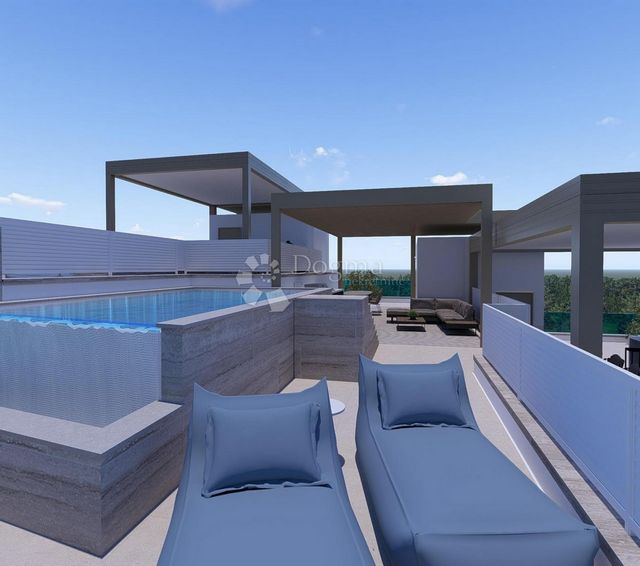 Prekrasna vanjska terasa sa iznimnim pogledom od 22.80 m2, dok stepenice vode na krovnu terasu sa privatnim bazenom.