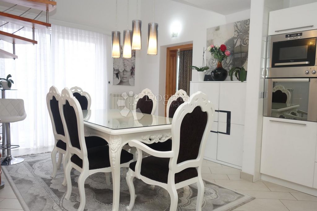 Stambene površine 169,59 m² sastoji se od ulaznog hodnika, predprostora, kuhinje s blagovaonom, dnevnog boravka, tri spavaće sobe, četri kupaonice, garderobe, galerije, koja je uređena u dječju sobu, ostave, balkona.