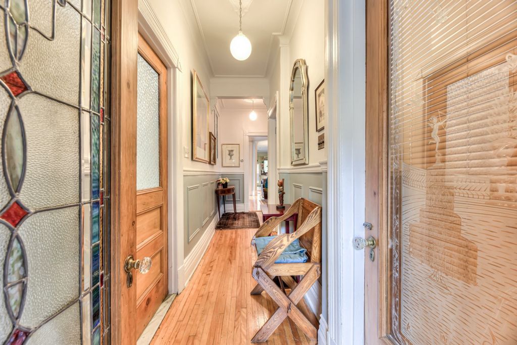 Свет в гостиной, Вещи жильцов OHROMUJÚCI 2-LÔŽKOVÝ BYT S VÝHĽADOM NA PARC LA FONTAINE zaberá prvé poschodie storočného triplexu na náhornej plošine Mont-Royal. Otvorený koncept obývania/jedálne, zrekonštruovaná kuchyňa a rozsiahla kúpeľňa ponúkajú pohodlie aj štýl. Vysoké stropy, odhalené tehlové stĺpy, podlahy z tvrdého dreva a farebné sklo vytvárajú hrejivú a príjemnú atmosféru. Veľká súkromná krytá terasa a juhozápadne orientované nádvorie poskytujú pokojné útočisko obklopené sviežou zeleňou spolu s vonkajším parkoviskom. Jedinečné architektonické prvky vrátane zdobených stropov a bohatých okien umocňujú čaro tohto krásneho domu. Len pár krokov od všetkých základných služieb! BYT: