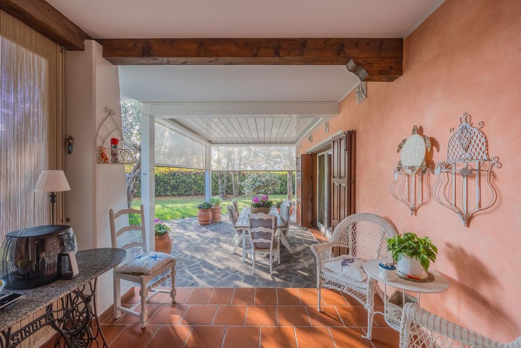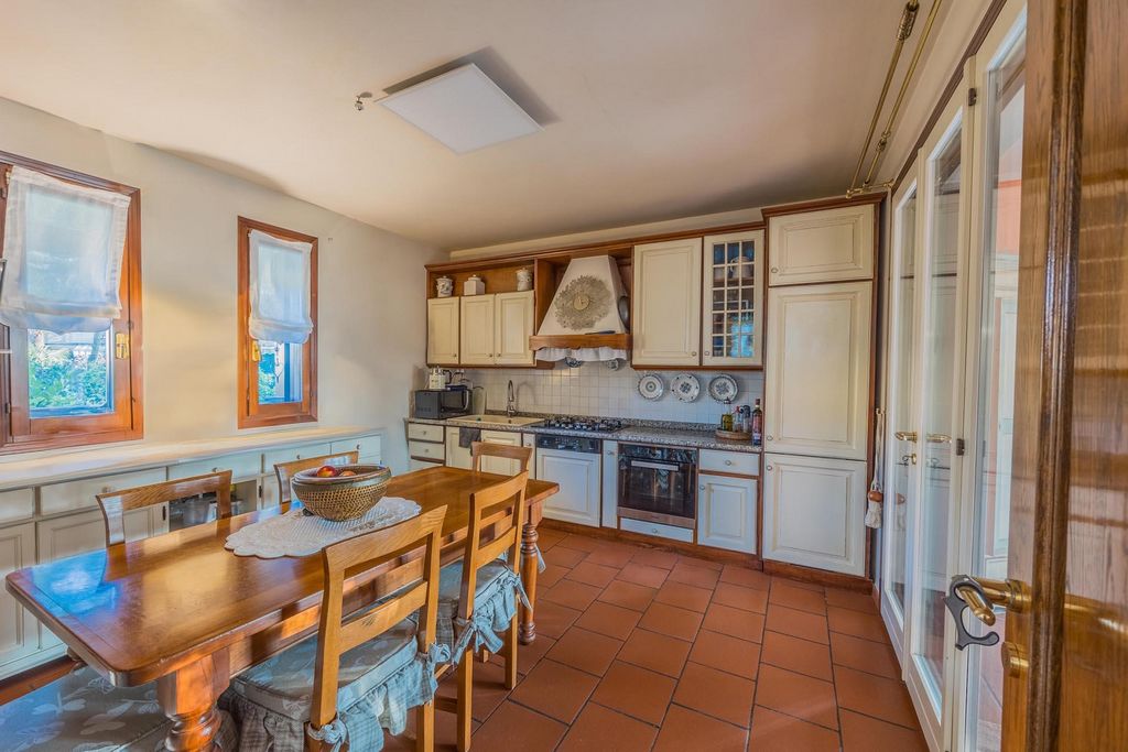 Die Villa erstreckt sich über mehrere Ebenen, von denen jede ihre eigenen charmanten Eigenschaften hat. Im Untergeschoss befinden sich die Kellerräume und eine gemütliche Taverne, die sich ideal für die Einrichtung einer Weinhandlung oder eines Hobbyraums eignen würde. Mit minimalem Aufwand könnte dies ein Traum für jeden Weinliebhaber oder Hobbyhandwerker sein. Beim Betreten des Erdgeschosses werden Sie von einem großen Wohnzimmer mit offener Küche begrüßt. Diese Kombination schafft einen wunderbaren Auftakt und garantiert gesellige Abende mit den Liebsten. Der Wohnbereich selbst ist voller Wärme und Komfort und bietet viel Platz, um Zeit zu zweit zu verbringen. In der obersten Etage befinden sich drei Schlafzimmer, zwei komfortable Badezimmer und ein Arbeitszimmer: eine perfekte Familienoase. Die Villa wird teilmöbliert mit Massivholzmöbeln geliefert. Dies verleiht den Räumen einen zusätzlichen Hauch von Gemütlichkeit und fügt sich harmonisch in das Ganze ein. Das Haus ist mit einer neuen Gasheizung, Wärmepumpe und Klimaanlage ausgestattet. Außerdem gibt es eine Wärmedämmung an den Außenwänden, was Energie spart und somit ein zusätzlicher Vorteil ist. Außerhalb des Wohnbereichs ist der große überdachte Bereich zum Entspannen und gemeinsamen Essen ein Hingucker. Hier können Sie die warmen Sommertage in der ruhigen Atmosphäre Ihres eigenen Gartens genießen, der eine schöne Fläche von 1.000 Quadratmetern umfasst. Einfamilienhäuser dieses Typs mit einem so großen Grundstück in der Nähe des Meeres sind eine echte Entdeckung, die auf dem Markt selten zu finden ist. Ein weiterer Vorteil dieser Immobilie ist der herrliche Blick ins Grüne, der die ruhige Umgebung perfekt ergänzt.
