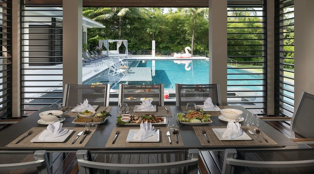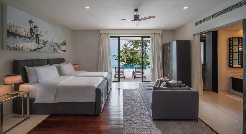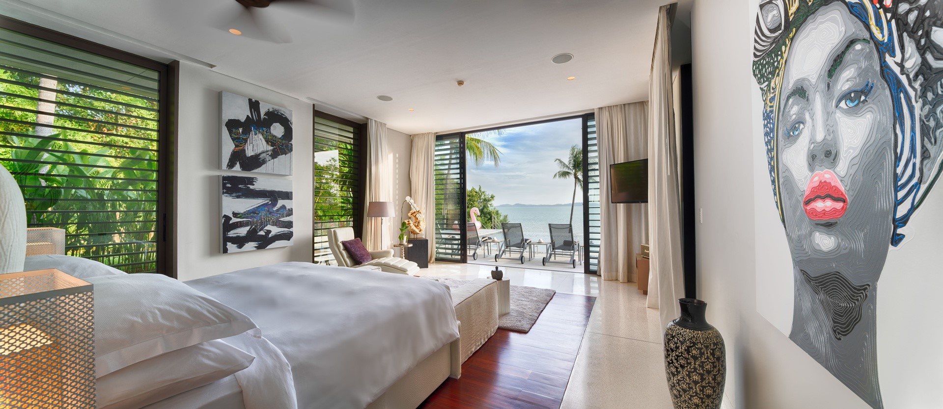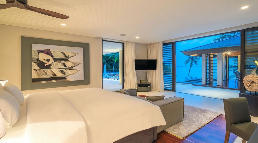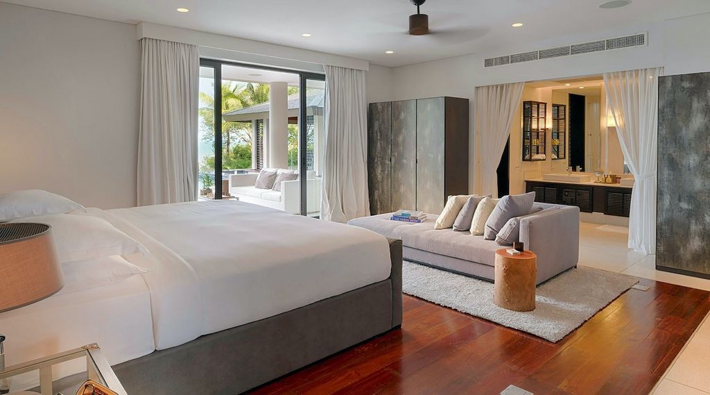 - Washing Machine View more View less Located in the exclusive award-winning Cape Yamu Estate, this stunningly designed villa occupies a prime area of waterfront land on the exclusive and quiet, Northeast coast of Phuket. This luxurious, 4-bedroom, 5-bathroom, plus 3-powder room multi-level masterpiece is the product of world-renowned architectural design team Philippe Starck and Jean-Michel Gathy. This villa enjoys unparalleled views of Phang Nga Bay, a naturally preserved region with its rolling emerald hills blanketed by lush tropical landscape, tall coconut groves, and fast access from nearby marinas to beautiful islands with pristine beaches and dramatic limestone cliffs. The property is just 20-minutes from Phuket International Airport, and nearby four full-service marinas with two boating piers. It is nestled in a quiet gated community and owners enjoy access to the nearby award-winning five-star COMO Point Yamu Resort, with its state-of-the-art sports and wellness facilities and superb dining options. For nature lovers, the Khao Phra Thaeo National Park with Gibbon Rehabilitation Centre and eye-catching Bang Pae waterfall are within close reach. The beautiful beaches of BangTao and the bustling streets of Patong and Phuket Town are a mere 30-minute drive away. This palatial haven tastefully blends contemporary Thai design with modern grandeur, featuring spacious open-plan indoor/outdoor living areas, opulent interiors, verandas with sweeping sea views, comfortable ensuite bedrooms, and warm lighting to enhance serenity. The tiered verandas incorporate a reflective pond above a stylish 30-metre infinity lap pool with swim-up bar and adjacent alfresco dining area. The villa is brought to life each day with spectacular sunrises over the majestic cliffs in Phang Nga Bay, and sunset can be enjoyed from the private lawns and the beach. On arrival, enjoy the aromatic frangipani tree-lined lawns sweeping down to the grand entry sala and reflecting pool beside a large, covered carport with ample parking for up to 4 cars. The grand vaulted entrance with massive double doors opens to a living and dining pavilion that spills out onto a sea view, upper-level terrace overlooking the pool, lawn, and beach. The center of the villa features a pavilion of cathedral-like dimensions, where a vaulted wooden teak ceiling supported by spectacular white columns towers over terrazzo and rich teak floors. It is furnished with a sleek polished concrete dining table and a generous array of plush sofas and armchairs with soft area rugs. The space is stylishly accented with a soothing mix of hand-crafted and bronze Buddha sculptures and vibrant original artwork from Northern Thailand that balance with the contemporary furnishings. The villa is fully furnished with artwork, kitchen appliances and dining ware, bedroom linens, sports and gym equipment, paddle boards, and kayaks. Adjoining the pavilion on the right is the upper guest suite with pond and terrace access. Connected on the left is a fully equipped Western-style guest dining area which boasts a bar counter and stools, a wine fridge, kitchen/bar appliances, 50-inch wall-mounted screen with Apple and Pulse TV, and a chic dining table with white leather seating. This room opens onto the upper pond terrace with spectacular views of the bay. Adjacent is an additional fully equipped chef/maid’s kitchen, which includes a granite top island, also with bar seating. This further leads to the villa managers office, maid’s patio, bedrooms, bathroom, storage, and laundry. The outdoor living spaces at the villa include a furnished upper-level sun terrace with a reflective pond and unobstructed sea views and immediately below, a partially shaded pool deck with sofa seating, sun loungers, large double daybed and outdoor gym equipment. The 30-meter infinity lap pool features a shallow lounge shelf for relaxing or kids to swim, as well as a swim-up bar and integrated dining sala. Stretching beyond the pool is an immense flat, flexible, and open lawn with direct access to a peaceful beach for walks, boating and water sports. On the lower level is a very flexible arrangement currently presented as a primary suite, two neighboring guest suites and a media room/children’s bedroom. These lower-floor rooms enjoy direct access to the pool terrace with its alfresco dining and lounging areas. Four generously sized ensuite bedrooms are air-conditioned with ceiling fans and come with plush mattresses, crisp white linens, built-in wardrobes, soft-cushioned lounge seating and floor-to-ceiling sliding glass doors that all open onto a shared veranda with sea views. Primary and guest suites have outdoor patios with a shower, and utility supply available to install a hot tub/jacuzzi. The rooms are decorated with original artwork and come equipped with a blue tooth speaker and charging station. Each double bed has an integrated trundle bed. Each ensuite feature twin sinks, rain showers, large mirrors, private water closet, and both sheer/black-out curtains. PROPERTY FEATURES PRIMARY SUITE Privately situated on the lower level, the villa’s primary suite is designer-chic, and equipped with a wall-mounted 50-inch TV screen, surround-sound speakers, and a Marshall sound system. This suite has a lounging area with a sofa and chaise lounge to enjoy stunning sunrise views and opens directly onto the pool terrace and outdoor shower patio. The ensuite bath features a private water closet, generous wardrobes/dressing area and integrated desk/dressing table. LOWER GUEST SUITE This guest suite offers a large king bed, convertible to twins. Airy and invigorating, it features a refreshing colour scheme and is furnished with a deep-cushioned chaise lounge and integrated desk/dressing table. The room has a 50-inch TV and enjoys easy access to the outdoor sala and swim-up bar, as well as the media room for entertaining. GUEST ROOM This room offers a large king bed, convertible to twins. Bright a