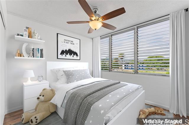 This beautifully renovated 2-bedroom, 1-bath unit in the heart of Waipahu is move-in ready and offers exceptional value. Plantation View Hale is conveniently located within walking distance to schools, restaurants, shopping, and city transportation. The condominium's maintenance fee includes electricity, water, hot water, sewer, and common area maintenance—a valuable inclusion. Recent upgrades include new paint, new flooring, a modernized kitchen, updated lighting, and more. The unit features excellent natural ventilation, and an additional flat monthly fee applies if a window A/C unit is installed, as not all units have this feature.