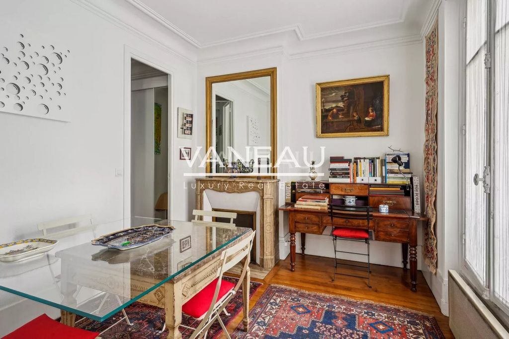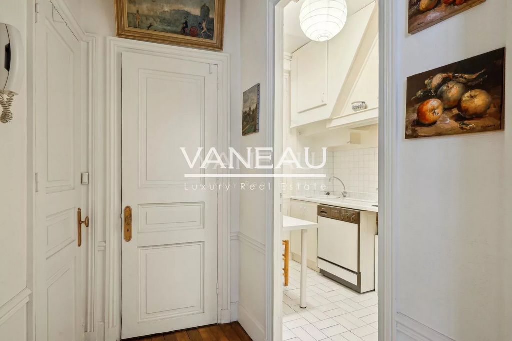 - Intercom Dans le quartier de l'Ecole Militaire, au sein d'une copropriété de standing, un appartement de deux pièces (38,85 m² Carrez) avec du cachet, accessible par ascenseur, donnant sur une jolie cour arborée, exposé Sud-Ouest. Ce bien vous séduira grâce à ses éléments d'origine conservés (parquet, moulures et cheminées). Il se compose d'une entrée, d'une cuisine équipée, d'un séjour, d'une chambre avec dressing, d'une salle de douche et de toilettes séparés. Parties communes rénovées et gardienne à demeure. Une cave complète ce bien. Loi ALUR : Mandat N° 20306 - Honoraires à la charge du vendeur - Prix : 609 000 EUR honoraires inclus - Copropriété incluant 50 lots - Quote-part annuelle du budget prévisionnel 1250 EUR - Aucune procédure en cours (articles 29-1A/29-1 loi 65-557, L.615-6 du CCH) - Les informations sur les risques auxquels ce bien est exposé sont disponibles sur le site Géorisques : ... - Détails de notre tarification sur ... />Features: