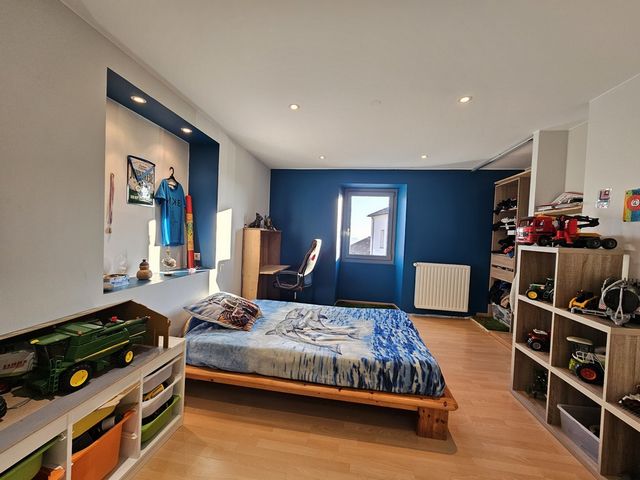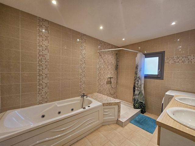 A l’étage, vous trouverez 4 chambres dont une suite parentale avec ses douche et dressing, une salle de bains, un wc, un espace bureau et un séchoir.