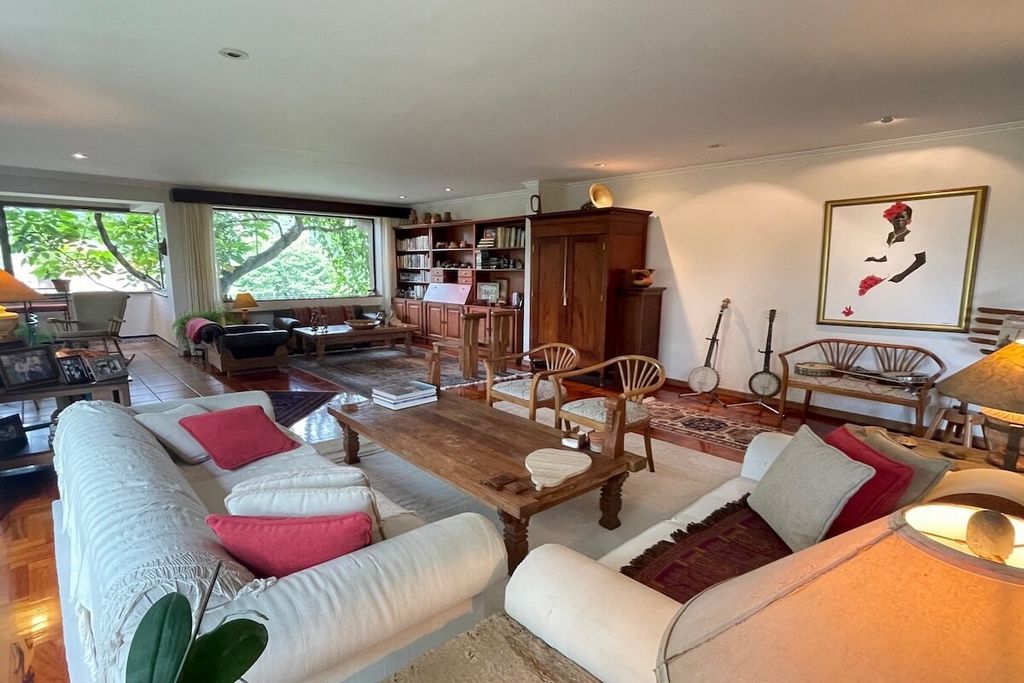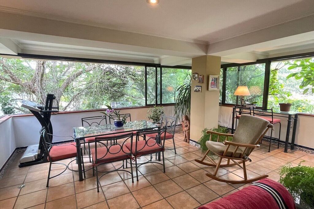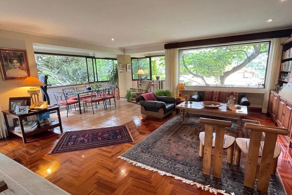 Propriété-RC1325 Bel appartement de plain-pied dans le condominium exclusif Del Rio, Escazú. Un seul étage. 3ème étage. Double salon, salle à manger, terrasse intégrée, 1/2 salle de bain invités, grande cuisine avec bar pour le petit-déjeuner, garde-manger, buanderie, chambre de bonne avec salle de bain complète, cave à vin, garage pour 2 voitures. 3 chambres (la principale avec dressing, salle de bain avec douche et jacuzzi), 2 salles de bains (2 chambres secondaires partagent 1 salle de bain) et salle de télévision. Finitions de luxe : planchers en bois dans le salon, grands espaces, environnement de beaucoup de nature avec de beaux arbres et le bruit de la rivière. Frais d’entretien : 500 000 ₡ Année de construction : 1995 4 unités dans la copropriété. 264 m² habitables + 30 m² de parking attribué.