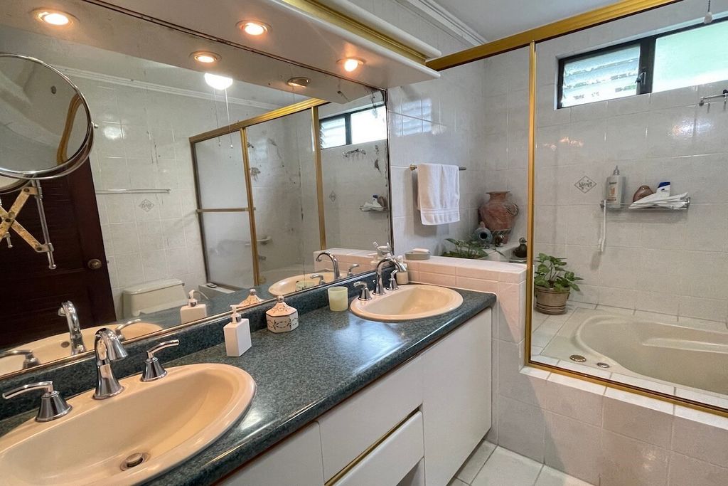 Nieruchomość-RC1325 Piękny jednopiętrowy apartament w ekskluzywnym kondominium del rio, Escazú. Jedno piętro. 3 piętro. Dwuosobowy salon, jadalnia, zintegrowany taras, łazienka dla 1/2 gości, duża kuchnia z barem śniadaniowym, spiżarnia, pralnia, pokój pokojówki z pełnym węzłem sanitarnym, piwnica na wino, garaż na 2 samochody. 3 sypialnie (główna z garderobą, łazienka z prysznicem i jacuzzi), 2 łazienki (2 dodatkowe sypialnie dzielą 1 łazienkę) i pokój telewizyjny. Luksusowe wykończenia: drewniane podłogi w salonie, duże przestrzenie, otoczenie dużo natury z pięknymi drzewami i szumem rzeki. Opłata eksploatacyjna: 500 000 ₡ Rok budowy: 1995 4 lokale w kondominium. 264 m² powierzchni mieszkalnej + 30 m² przydzielonego parkingu.