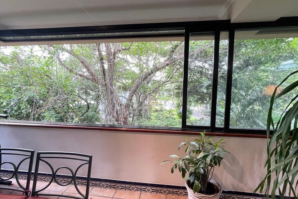 Propriedade-RC1325 Lindo apartamento térreo no exclusivo Condomínio del Rio, Escazú. Um único andar. 3º andar. Sala de estar dupla, sala de jantar, terraço integrado, 1/2 banheiro social, cozinha ampla com bar de café da manhã, copa, lavanderia, quarto de empregada com banheiro completo, adega, garagem para 2 carros. 3 quartos (o principal com closet, banheiro com chuveiro e jacuzzi), 2 banheiros (2 quartos secundários compartilham 1 banheiro) e sala de TV. Acabamentos de luxo: piso de madeira na sala, espaços amplos, ambiente de muita natureza com belas árvores e o som do rio. Taxa de manutenção: ₡500.000 Ano de construção: 1995 4 unidades no condomínio. 264 m² de área útil + 30 m² de estacionamento atribuído.