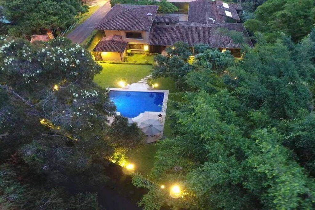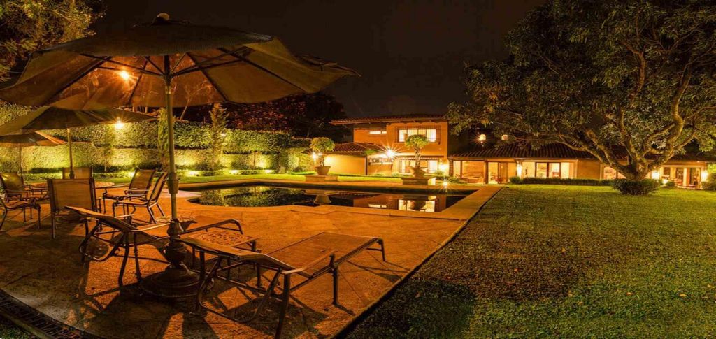 - Barbecue Property-RC985 House in Luxury Private Residential in Escazú. First floor: 2 living rooms, dining room, front dining room, 1/2 guest bathroom, large kitchen, large laundry room, 2 maid's quarters with 1 full bathroom, 2 wine cellars, garage for 2 cars under roof, 1 room for storage and 1 full bathroom in garage. 3 bedrooms (the main one with walk in closet, bathroom with shower, toilet and independent jacuzzi), 2 full bathrooms (2 secondary bedrooms share 1 bathroom) and TV room. Large garden, pool with gas heating. Second floor: TV room, 2 bedrooms with walk in closet and own bathrooms. Luxury finishes: Marble and wood floors, sound system, smart lighting system, A/C in all rooms, gas installation for kitchen and pool, marble bathrooms, kitchen with granite countertops. Security fee:₡80,000 Year of construction: 1996 Extensive refurbishment: 2016 ALL FURNITURE IS NEGOTIABLE ALSO FOR RENT AT $11,500 + VAT