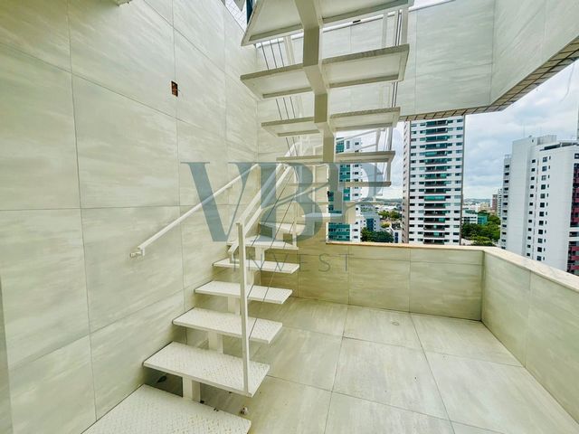 Visit our website: ... View more View less Ático tríplex completamente renovado en ubicación privilegiada. 438m² de área total 261m² de área útil 4 plazas de garaje Suelos de porcelanato y vinílico Escalera de granito Instalaciones hidráulicas y eléctricas nuevas Puertas y ventanas nuevas Edificio de 10 pisos Apartamento en el 10° piso 1° piso: Salón con 3 ambientes 1 habitación 1 baño / suite Cocina amplia DCE (cuarto de servicio) 2° piso: 3 habitaciones 2 suites Sala de estar íntima Baño compartido 3° piso: Área de ocio privada Piscina / Bar Área gourmet Baño Despensa Espacio abierto Características adicionales: Salón de fiestas