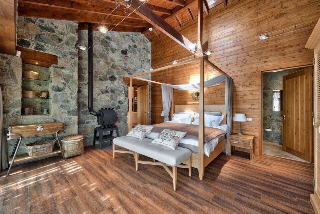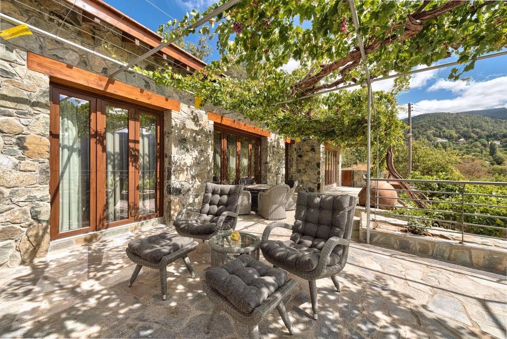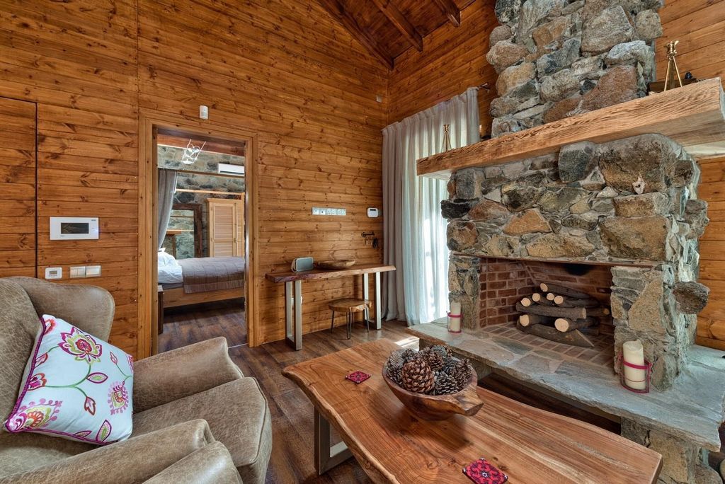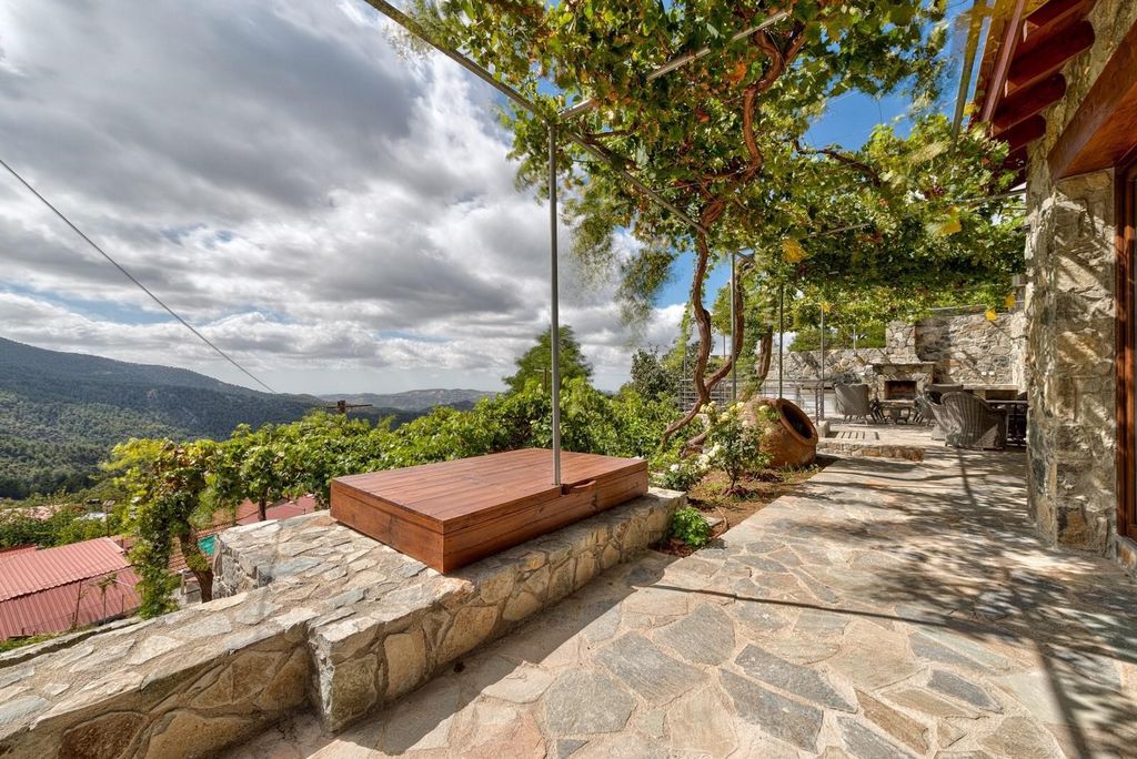 - Sauna Welcome to this charming 2-bedroom villa in Prodromos, nestled in the highest village of the Troodos Mountains. Here, you’ll enjoy fresh, crisp mountain air and spectacular views all year round.The villa, designed in a cozy chalet style, combines wood and stone elements, creating a warm and inviting atmosphere. Inside, you’ll find an open-plan kitchen perfect for entertaining, and a fireplace to keep you warm during the cooler months.The villa also features underfloor heating and an electric sauna, ensuring your comfort year-round. This nearly new, fully equipped home is built with modern technologies, offering two spacious bedrooms, each with ensuite bathrooms, and two additional storage rooms.Outside, the luxury continues with a fully electric BRUSTOR pergola, complete with two built-in heaters and roll-down shutters, providing an ideal space to enjoy the outdoors regardless of the weather. The lovely garden, adorned with a “grape roof,” offers a delightful setting for outdoor cooking and dining. Additionally, there is a designated area where you can plant your own plants, fruits, or vegetables, making it perfect for garden enthusiasts.Whether you’re looking for a perfect holiday retreat or a cozy year-round residence, this villa in Prodromos offers an exceptional living experience in the heart of nature.Air Conditioning
