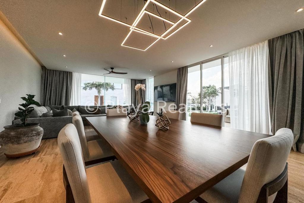 - Tennis View more View less Espectacular Residencia: Vistas Impresionantes a la Marina en Comunidad Exclusiva Bienvenido a una exquisita obra maestra moderna con impresionantes vistas a la marina, ubicada dentro de la prestigiosa comunidad de Puerto Cancún. Esta lujosa residencia está meticulosamente diseñada para ofrecer el epítome de la vida contemporánea, contando con una variedad de características excepcionales y comodidades en sus múltiples niveles. 4 Habitaciones / 4 ½ Baños Cuarto de servicio adicional con baño en suite y entrada separada. Estacionamiento para 3 vehículos Cuarto de lavado Cuarto de almacenamiento 251 m2 de terreno / - 558 m2 / de construcción Planta Baja: Al ingresar al gran vestíbulo, te recibirá un amplio diseño de concepto abierto que conecta perfectamente la sala de estar, el comedor y la cocina de última generación. Diseñada para ofrecer funcionalidad y elegancia, la planta baja también alberga un acogedor área de recepción, perfecta para recibir a los invitados. Además, cerca de allí se encuentra un conveniente medio baño. Para mayor comodidad, la propiedad incluye estacionamiento techado para hasta tres vehículos, asegurando un amplio espacio para residentes y visitantes por igual. Un cuarto de servicio dedicado con baño en suite ofrece un alojamiento cómodo para el personal doméstico. Completando este nivel se encuentra un cuarto de lavado totalmente equipado y un área de almacenamiento, atendiendo a las necesidades prácticas de la vida moderna. Primer Piso: Al subir la escalera, descubrirás los cuartos privados de la casa. Este piso cuenta con tres amplias habitaciones, cada una con su propio baño en suite para máximo confort y privacidad. Las habitaciones están cuidadosamente diseñadas para proporcionar un refugio sereno, con abundante luz natural y vistas impresionantes del paisaje circundante. Segundo Piso: Continuando tu camino hacia arriba, encontrarás una acogedora sala de TV contigua a una magnífica terraza en la azotea. Este espacio versátil sirve como un entorno idílico tanto para la relajación como para el entretenimiento, con amplio espacio para descansar, cenar y disfrutar del sol. Un conveniente baño adicional en la azotea asegura la máxima comodidad para residentes e invitados. Tercer Piso: La joya de esta excepcional residencia es la amplia terraza en la azotea, que ofrece vistas panorámicas de la Marina y más allá. Ya sea que estés organizando reuniones al aire libre o simplemente relajándote con el telón de fondo de impresionantes puestas de sol, este oasis en la azotea proporciona el escenario perfecto para disfrutar lo mejor de la vida costera. Características Adicionales: Esta distinguida casa está equipada con un suavizador de agua y sistema de ósmosis, garantizando una calidad de agua prístina en toda la propiedad. En el exterior, una impresionante piscina en esquina envuelve la residencia, ofreciendo un escape refrescante del calor tropical y un ambiente tranquilo para la relajación al aire libre. Estilo de Vida en Puerto Cancún: Ubicado dentro de la exclusiva comunidad de Puerto Cancún, los residentes disfrutan de acceso a una variedad de comodidades de clase mundial y ofertas de estilo de vida incomparables. Desde playas prístinas y campos de golf de campeonato hasta destinos de compras y restaurantes de lujo, Puerto Cancún encarna el epítome de la vida costera de lujo. Con su conveniente proximidad al aeropuerto y las principales atracciones, este codiciado lugar presenta una oportunidad sin igual para propietarios y inversionistas exigentes por igual. SE VENDE EN DOLARES el monto en pesos puede variar acorde al tipo de cambio CASA MARINA PHO6717938
