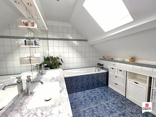 A l'étage, un couloir dessert une salle d'eau avec wc, deux chambres lumineuses et une suite parentale avec salle de bain attenante, baignoire et double vasques.