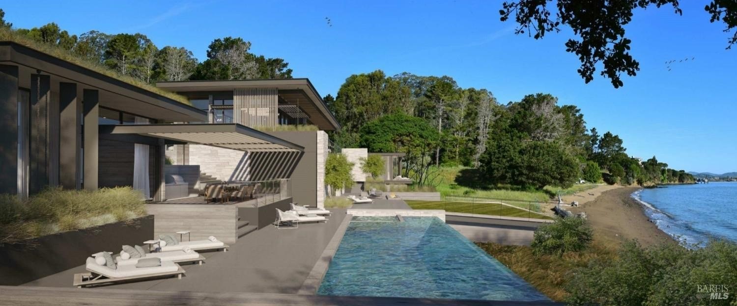 This is a once-in-a-lifetime opportunity to acquire a 7+ acre beachfront trophy property with permit-pending *Approved Plans* for a 5 bedroom, 7 bathroom, 7,300 SF luxe home + a spectacular 1 bedroom, 1 bathroom guest house. Located in highly prized Tiburon CA and in one of Southern Marin's most sought-after neighborhoods, this inspired Californian Modern home was imagined by esteemed architect Sean Bailey who has designed the most elegant glass, cedar, stone, and steel cutting-edge gated luxury estate. With an abundance of naturally occurring level land, the indoor-outdoor living is extended throughout the space with the creation of multiple seamless patios, decks, and outdoor living rooms. This one-of-a-kind modern and luxurious private beachfront estate redefines Bay Area living. Approved amenities include an infinity pool and spa, a yard for play, private auto-court for ample parking, and a spacious 3 car enclosure. A truly unique opportunity offering the most compelling lifestyle.