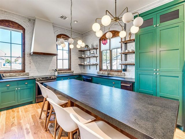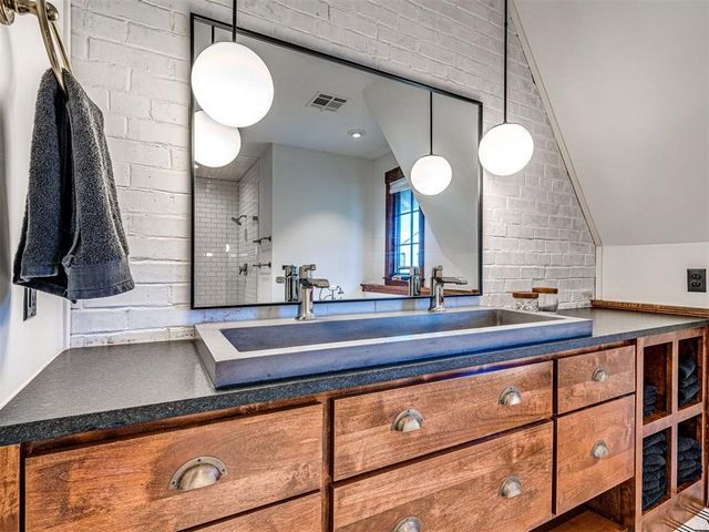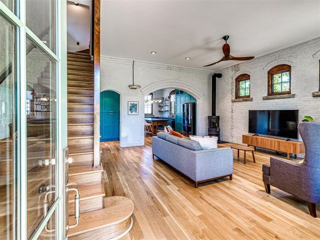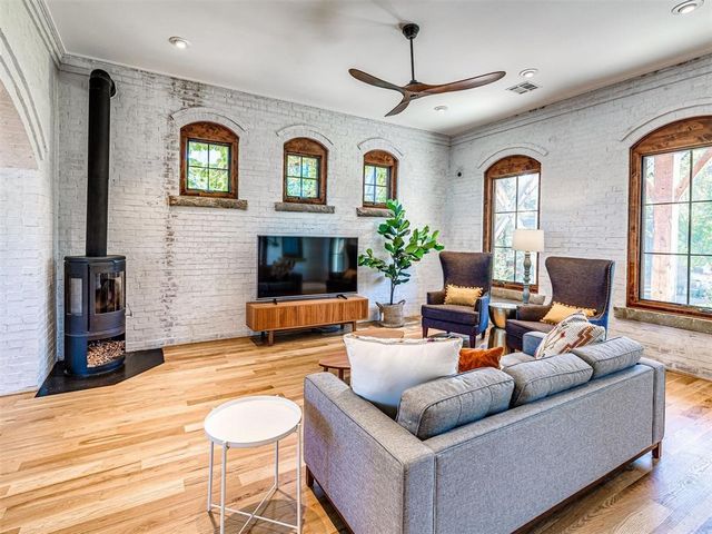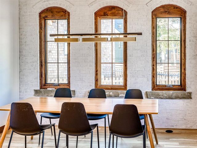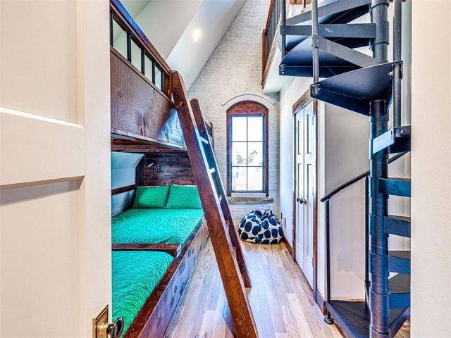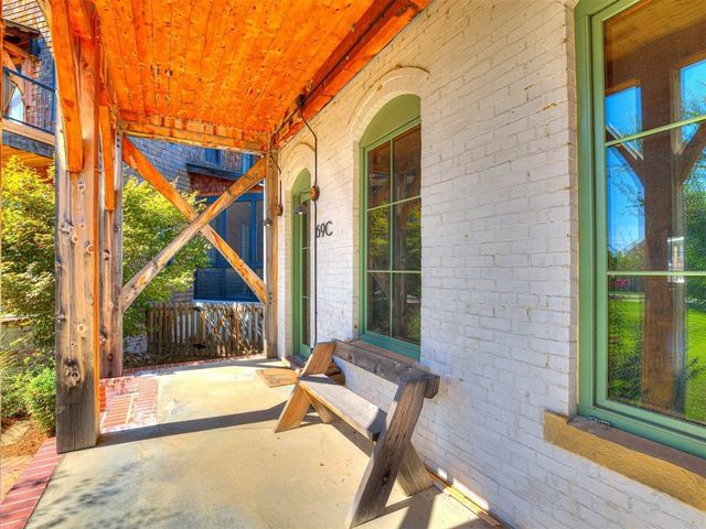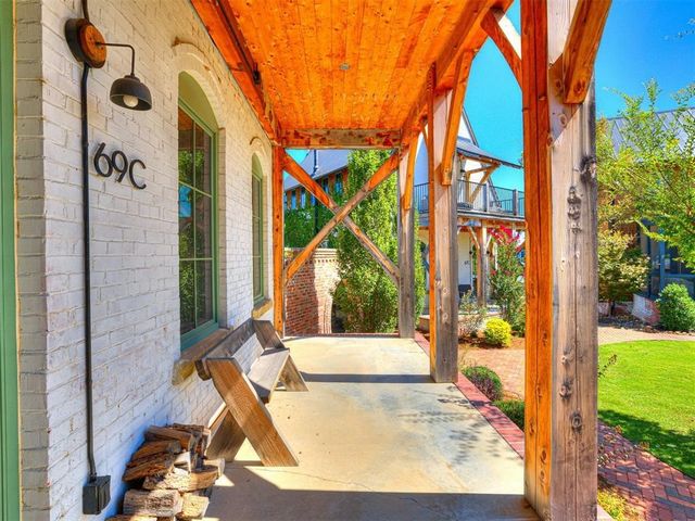 A rare offering in Carlton Landing! Structural masonry home in the Bend! This 3 bedroom structural masonry home with a timeless lime wash finish is spectacular! Spend time on the timber framed front porch overlooking the lush green space. Step inside to an open concept living and kitchen and experience the warmth and authenticity of the triple wythe brick walls and wood burning Morso Stove. Fall and winter nights will be made complete sitting by your wood stove or enjoying company at the common area fire pit. The kitchen has an abundance of prepping, cooking and entertaining space. Imagine yourself here with plenty of guests, enjoying their company after a day on the water. Upstairs is three bedrooms, including the master bedroom with an ensuite bathroom. Sip your morning coffee on the upper porch and sneak glimpses of lake Eufaula. The bunk room comprises of 3 full beds and 1 twin, with a spiral staircase to a living area (or more sleeping space!) High end and thoughtful finishes are evident throughout the home, such as the custom trim carpentry and Rejuvenation lights.Structural masonry is a triple wythe masonry envelope home that offers a low maintenance, sustainable (geothermal as well!) and stunning option in Carlton Landing. The limewash on the brick gives a The Bend is a picturesque pocket neighborhood comprised of cedar shake and structural masonry homes in Carlton Landing. Owners enjoy a common green space and a stunning “moon gate” which leads to a community fire pit with custom made dining table. Each owner receives 2 parking spots, as well as a 6x8 storage bay with covered golf cart parking. This home is walkable to Firefly Park and community garden, as well as nature trails and the Meeting House! Set up your showing and tour of Carlton Landing today!
