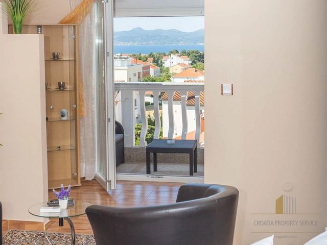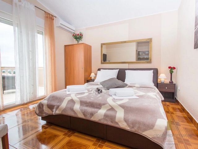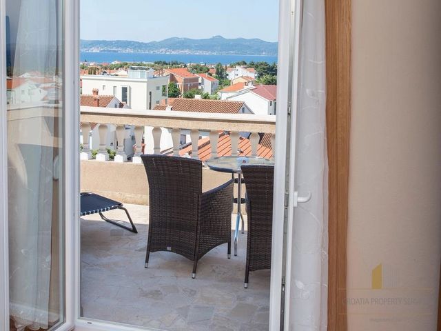 Zadars flygplats ligger 15 minuter bort med bil. Detta lägenhetshotell ligger 3 km från den historiska stadskärnan med kyrkan Sankt Donatus från 800-talet och Sea Organs.För att få mer information och för att ordna ett visningsmöte med vår mäklare måste du först underteckna ett mäklaravtal. Detta avtal överensstämmer med dataskyddsbestämmelserna och köpekontraktet för fastigheter.