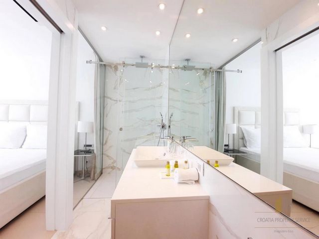 Luxury hotel located in an elite part of Zadar, in an exceptional location, only 800 m away from beautiful beaches, offering a perfect retreat for all who seek comfort and elegance . The hotel features three luxuriously furnished apartments, ten elegant rooms with enchanting sea views, and a buffet breakfast restaurant located on the ground floor. The rooms are designed to provide guests with a sense of modern space, equipped with a large double bed, furnished balcony, and elegant bathroom. Each room offers a sea view, creating an atmosphere of relaxation and luxury. The apartments consist of a spacious living room, fully equipped kitchen, two lavish bathrooms, and a large terrace, perfect for enjoying the sunset. In the beautiful green courtyard, there are two swimming pools with sunbathing areas, ideal for relaxation and refreshment during hot summer days. With a four-star rating, this hotel represents a well-established business with an exceptionally high occupancy rate, making it an outstanding investment opportunity. To receive additional information and schedule a property viewing with our agent, you must first sign an Agency Agreement. This agreement adheres to data protection and real estate mediation laws. Agency commission: 3% + VAT For more information: Saša Šourek Tel: ... Email: ... ID NEKRETNINE: iro-2141 Features: - Air Conditioning