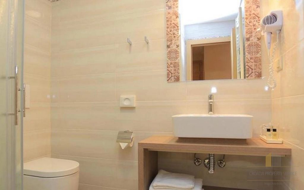 - Air Conditioning Exceptional 3*** star hotel just 100 meters from the beach for sale in Kaštela! Excellent location near Split International Airport, situated between two UNESCO-protected cities - Split and Trogir. Hotel of 950 m2. It has 20 modern, recently renovated rooms/apartments. All hotel rooms include a private bathroom, air conditioning, flat-screen TV with satellite channels, mini fridge, safe. Most rooms offer sea views. The hotel also has a breakfast restaurant and features a multifunctional conference room suitable for various business meetings and gatherings, with a capacity of up to 35 people. The space is equipped with a 2.5-meter-wide projector, a computer, and sound system with a microphone. Accommodation unit layout: Standard single room (1): 20 m² Standard double room (3): 17 m² Standard twin room (2): 21 m² Superior double room (3): 17 m² Lux double room (1): 21 m² Lux twin room with sea view (4): 21 m² Luxury two-story apartment with separate bedroom (3): 38 m² Luxury apartment with balcony (1): 44 m² The hotel operates year-round and, thanks to contracts with construction workers, is fully booked even outside the tourist season, from September to May. Don’t miss this unique investment opportunity! To receive additional information and schedule a property viewing with our agent, you must first sign an Agency Agreement. This agreement adheres to data protection and real estate mediation laws. Agency commission: 3% + VAT For more information: Saša Šourek Tel: ... Email: ... ID NEKRETNINE: iro-2246