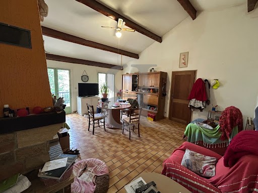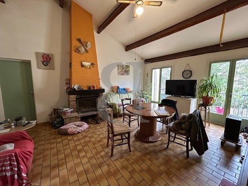 De plain pied, elle se compose de deux chambres, d'une pièce de vie lumineuse avec cheminée, accès terrasse, cuisine, salle d'eau et wc. Il y a également une agréable véranda de 12 m² ainsi qu'une dépendance avec salle d'eau. Vide sanitaire de 40 m² environ (caves).