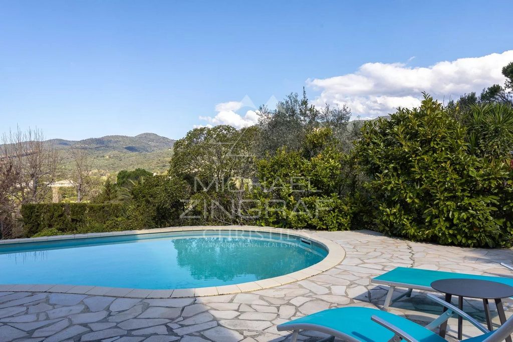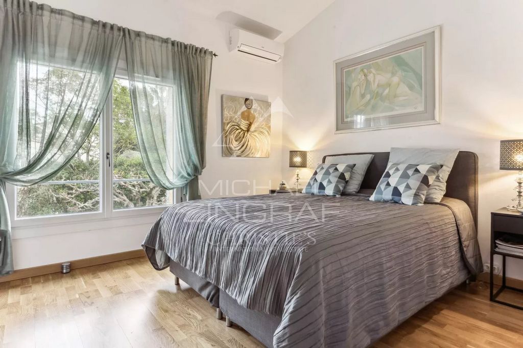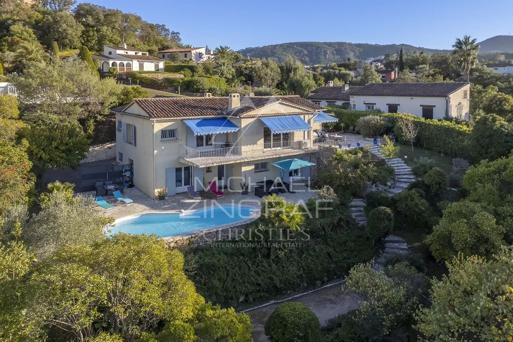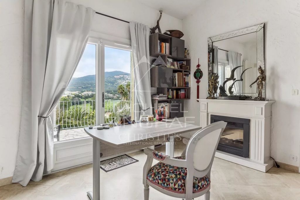 - Garage In a quiet, sought-after area of Mandelieu, in a dominant position, this elegant renovated family home boasts uninterrupted views of the mountains and golf course. With a total surface area of around 220m2, the property is laid out over two levels. The ground floor comprises a welcoming living/dining area with fireplace, high ceilings and opening onto a vast outdoor terrace, a kitchen, a master bedroom with en suite shower room, two bedrooms, a shower room and a guest toilet. The ground floor offers two bedrooms, a shower room, a separate toilet, a cellar and a 2-car garage. Just minutes from shops, beaches, golf courses and schools, and 30 minutes from Nice Côte d'Azur international airport, this property is ideal for year-round living or enjoying holidays with family or friends.