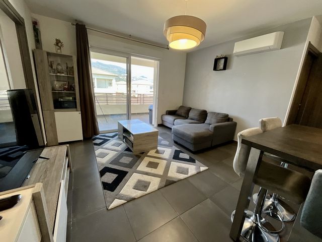 Description du bien : Situé au cœur de la commune de Lucciana, cet appartement T3 vous offre un cadre de vie agréable et fonctionnel. Avec ses prestations de qualité et son agencement optimisé, cet espace saura répondre à tous vos besoins. Spacieux et bien agencé, l’espace salon/cuisine est un véritable point fort de ce bien. Il est lumineux. Ce coin convivial est parfait pour des moments de détente ou des repas en famille. La cuisine, intégrée au salon, est modernisée avec des équipements fonctionnels et dispose de nombreux rangements. L’appartement comprend deux chambres confortables qui offrent une atmosphère calme et reposante. Chaque chambre dispose d'une fenêtre. Elles peuvent également servir de bureau ou de chambre d'amis selon vos besoins. La salle de bain est moderne, équipée d'une baignoire. Profitez d’une belle terrasse attenante, idéale pour vos moments de loisirs.