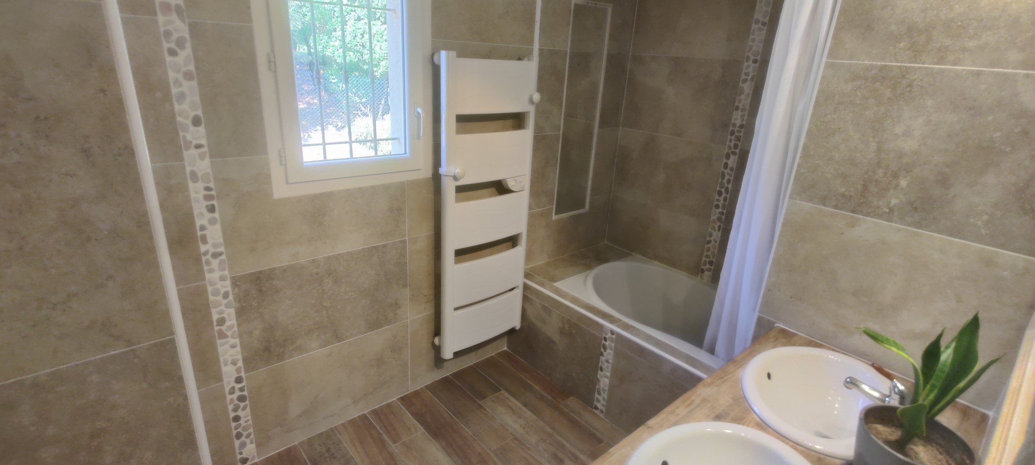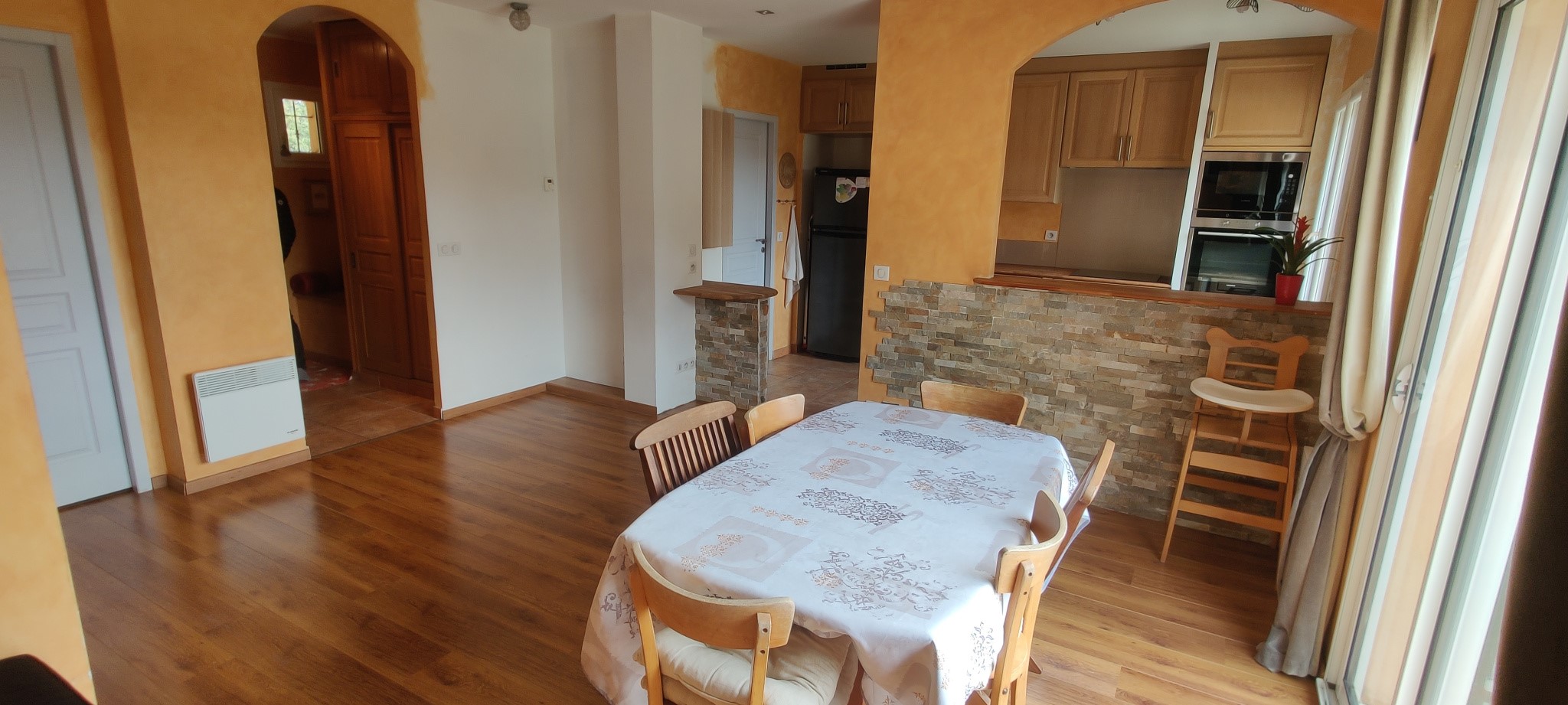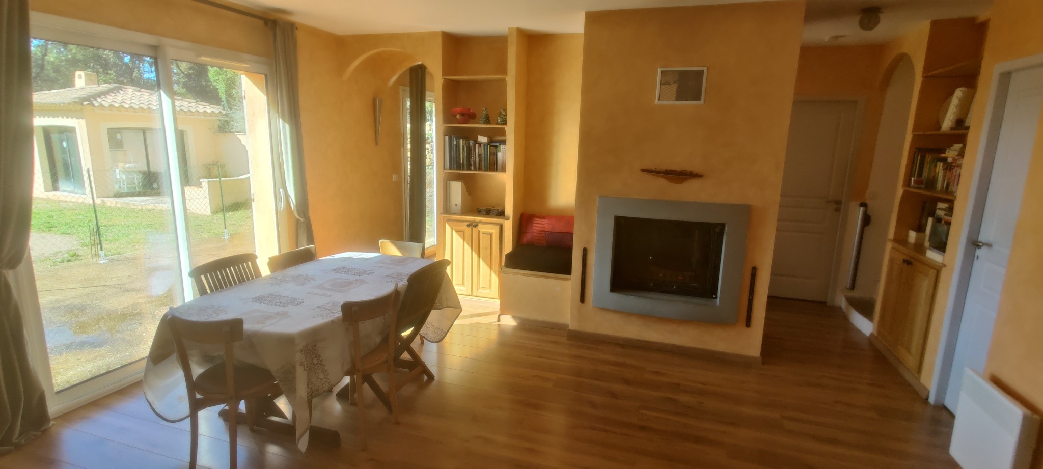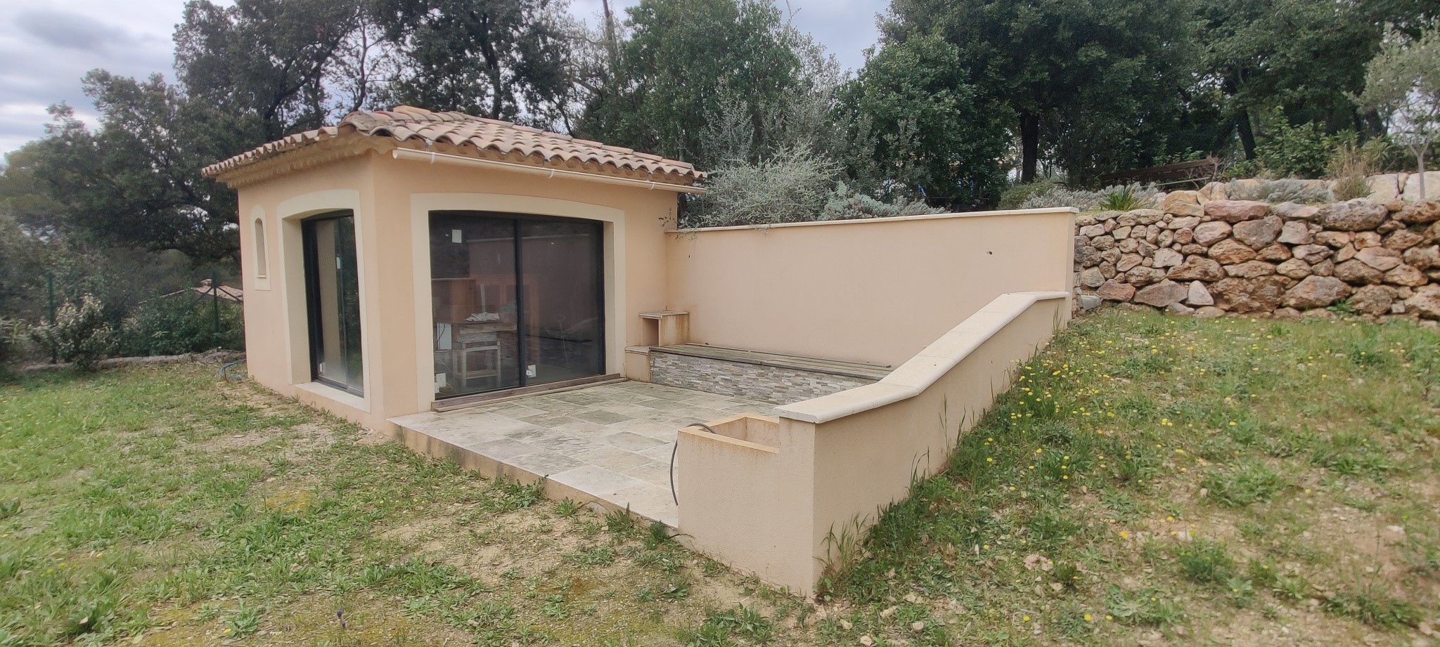 - Washing Machine View more View less Jolie bastide de 132 m2, construction 2008, édifiée sur un terrain piscinable dominant de 4000m2 entièrement clos et bien arboré, située en impasse, au calme absolu. Elle se compose, à l'étage, de quatre chambres lumineuses, d'une belle salle de bain, et d'un wc séparé. Au rez de chaussée se trouve une cuisine équipée donnant sur salle à manger et salon avec cheminée centrale, un grand cellier, un bureau, une entrée avec placard et un wc séparé. Une terrasse Sud d'environ 25 m2 à carreler, un pool house de 15m2 ainsi qu'un local technique (futur piscine) et atelier existant complètent l'ensemble. Reste piscine à créer et quelques finitions à réaliser. Pas de vis à vis.