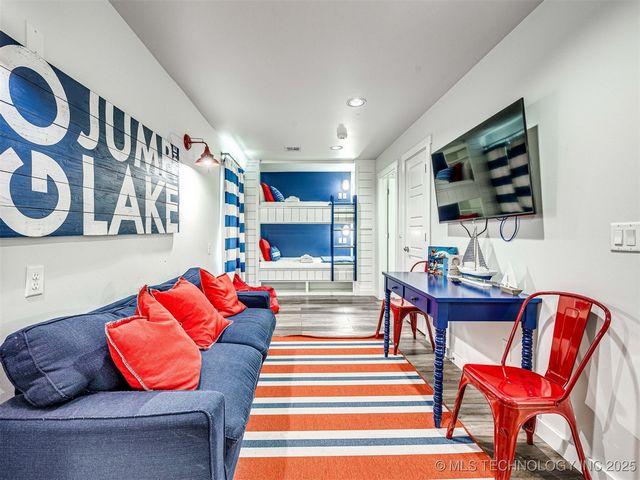 Nestled within the picturesque Carlton Landing community, 37 Redbud Street presents an exceptional opportunity for refined lake living. Boasting 4 bedrooms and 2.1 baths, this impeccably crafted residence, built in 2016, showcases a harmonious blend of elegance and comfort. Situated at Redbud Park, this home is a testament to the thoughtful design that defines Carlton Landing. A rare 2-car attached garage offers both convenience and functionality, while upper deck views capture the serene beauty of the surroundings. The allure of outdoor relaxation is elevated with a fire pit, perfect for gatherings under the starry Oklahoma sky. Step inside to discover an inviting bunk room and a mud room that ensures effortless organization. The heart of the home unfolds as an open kitchen and living room space, providing an ideal setting for both everyday living and entertaining. The kitchen's island with a breakfast bar adds to the functional layout, blending seamlessly with the living area. A defining feature of Carlton Landing is its resort-style ambiance, and this property effortlessly embraces that charm. Offering an atmosphere of coastal vibes and lakeside tranquility, Carlton Landing beckons you to embrace a life that's more than just ordinary. This lakeside town is a dreamy escape that encourages community, active living, and ecological stewardship. Here, every moment is cherished, every connection celebrated. Carlton Landing embodies a sense of purpose, a commitment to joy, and a shared experience of a life well-lived. Whether seeking a serene getaway or a cherished place to call home, Carlton Landing welcomes you with open arms. Make your dreams a reality at 37 Redbud Street, Carlton Landing's jewel of lakeside living. Visit for a taste of the extraordinary, or make this charming haven your forever home.