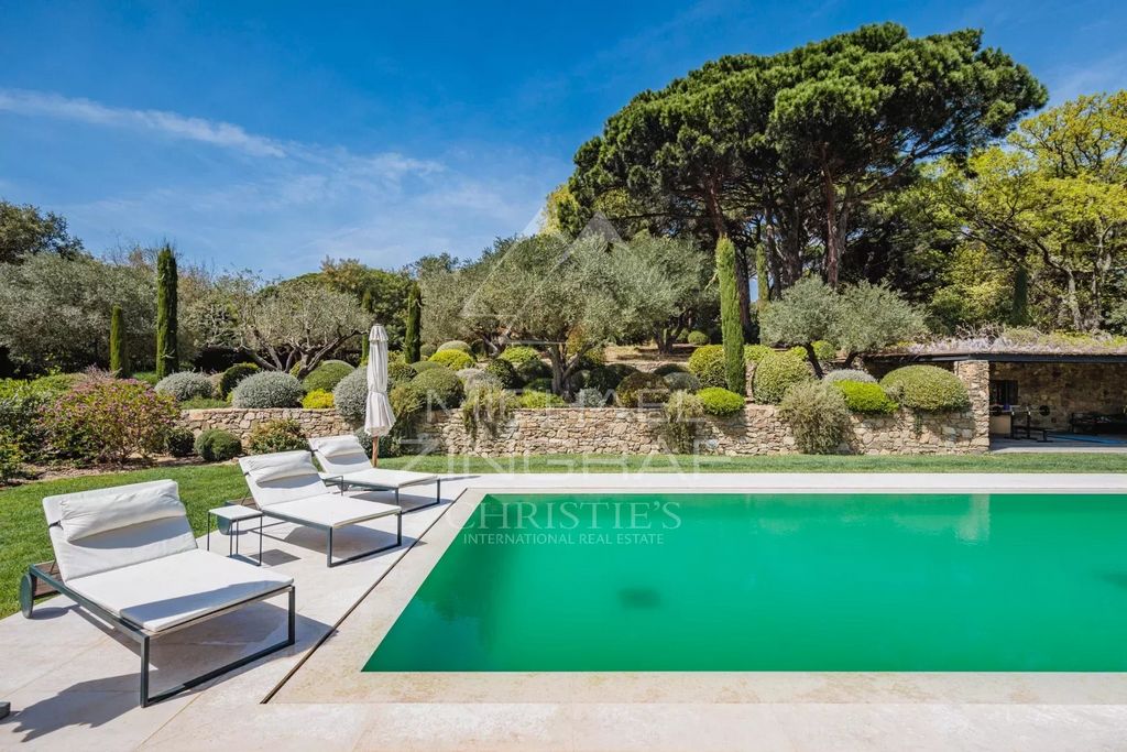 - Parking View more View less Proche du centre de Saint-Tropez et des plages de Pampelonne, cette magnifique propriété entièrement rénovée et au charme incontestable, comprend un parc paysager de 5 400 m2 et une maison de plain pied réalisé dans un très beau style provençal contemporain. Aucun vis-à-vis et calme absolu. Piscine miroir de 15 mètres.