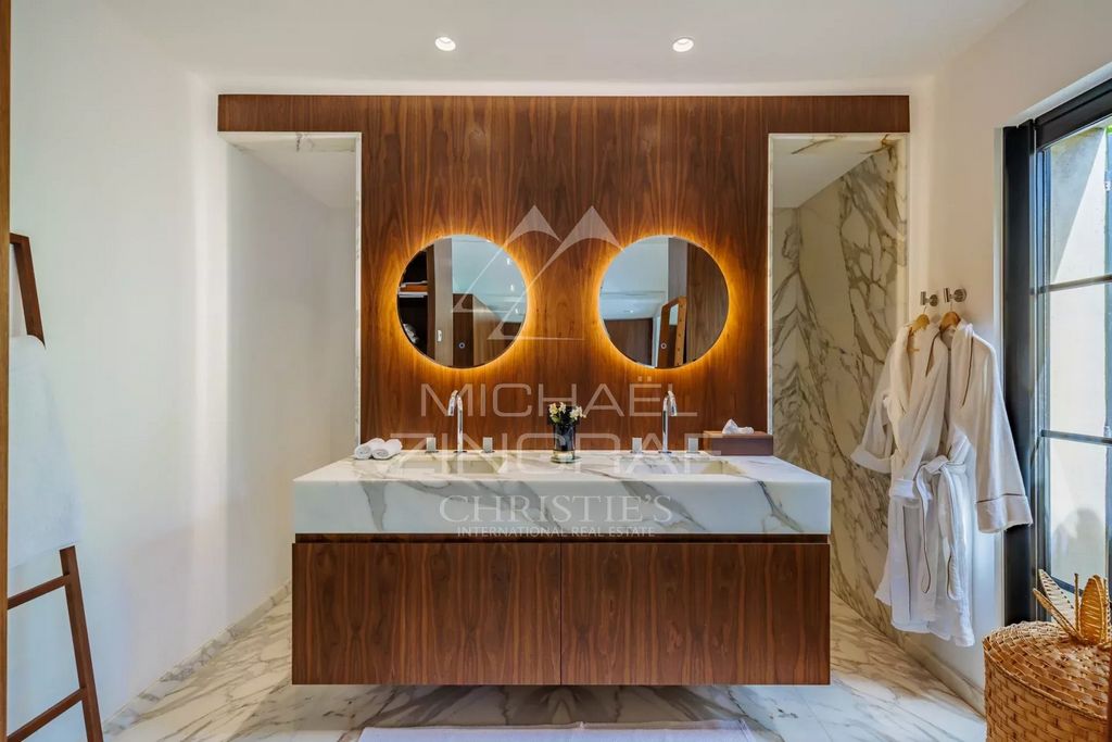- Parking Close to the centre of Saint-Tropez and Pampelonne beaches, this magnificent property completely renovated, consists of a 5 400 sqm landscaped garden and a single storey house designed in a amazing contemporary provençal style. No vis-à-vis, absolute tranquility. 15 meters mirror pool.
