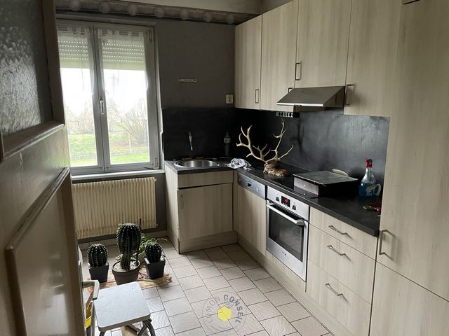 A l'étage, un appartement composé de 5 pièces dont un salon lumineux de 21m2 avec balcon, une cuisine, une salle de bains et un WC. (les pièces peuvent être redistribuées ou rénovées pour créer un appartement de plus de 90m2)