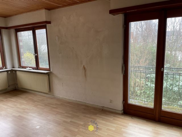 Im Obergeschoss befindet sich eine Wohnung, die aus 5 Zimmern besteht, darunter ein helles Wohnzimmer von 21m2 mit Balkon, eine Küche, ein Badezimmer und eine Toilette. (Die Zimmer können neu aufgeteilt oder renoviert werden, um eine Wohnung von mehr als 90m2 zu schaffen)