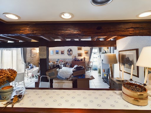 The main house benefits from double glazed windows and a new heat pump system with radiators ; it has exposed stone walls and beamed ceilings as well as an original working bread oven in the kitchen and an ancient and rare stone font (used to wash clothes back in the day!) There is a beautiful stone fireplace with an efficient wood burning stove in the living room. In the basement are 3 separate stone rooms (63m2), housing the boiler room, laundry room, storage and a lockable wine cellar with good head height and only accessible from the outside
