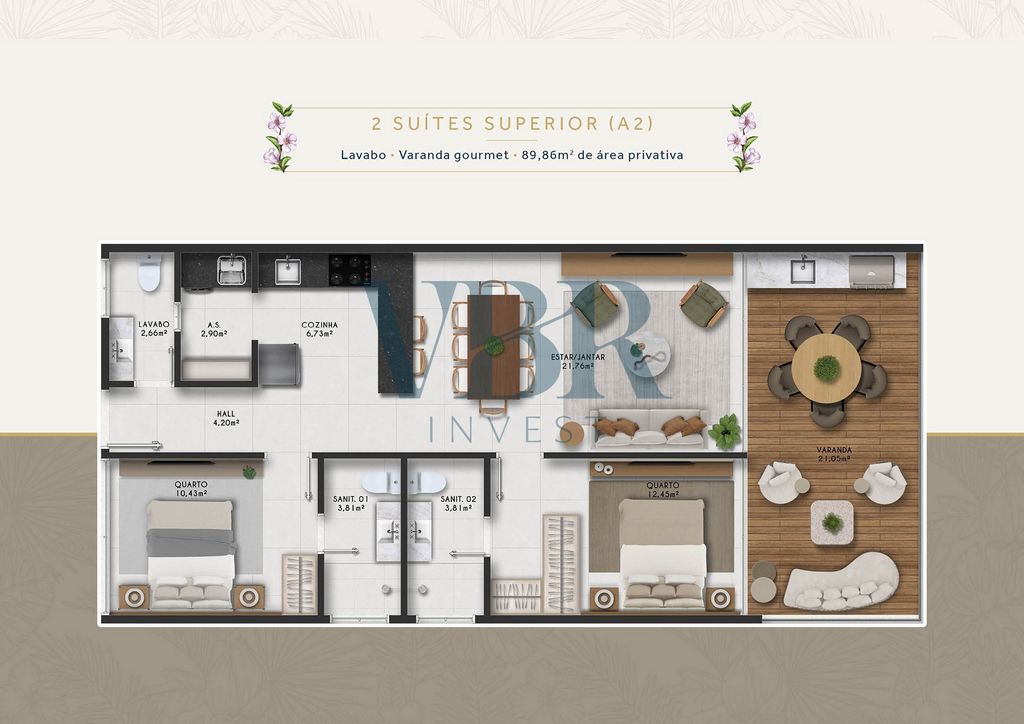 Contam com varanda gourmet, sala de estar/jantar, cozinha open space, área de serviço, 2 suítes, 1 WC social e garagem. Uma excelente opção para quem busca conforto e praticidade.