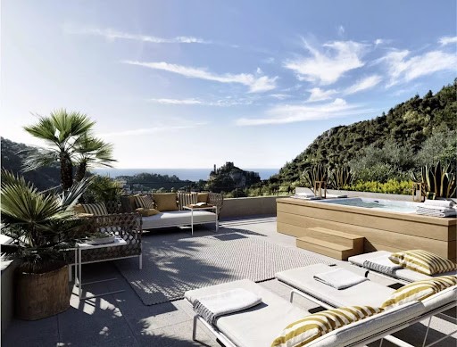 Enjoying an open view of the chateau and the Mediterranean, it offers 70,70 sqm of living space and opens onto a 47,30 sqm south-east facing terrace.