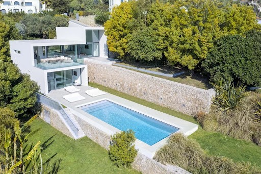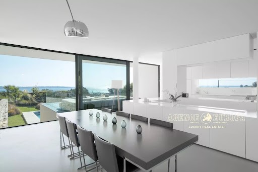 - Chambre de Maître In a particularly sought after area, out of sight, on the heights of Golfe Juan, in the immediate vicinity of Cannes and the beaches, in an environment of great tranquility, spectacular ultra-contemporary villa with clean lines of approximately 200sqm bathed in sunshine and enjoying a beautiful sea view.