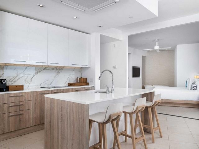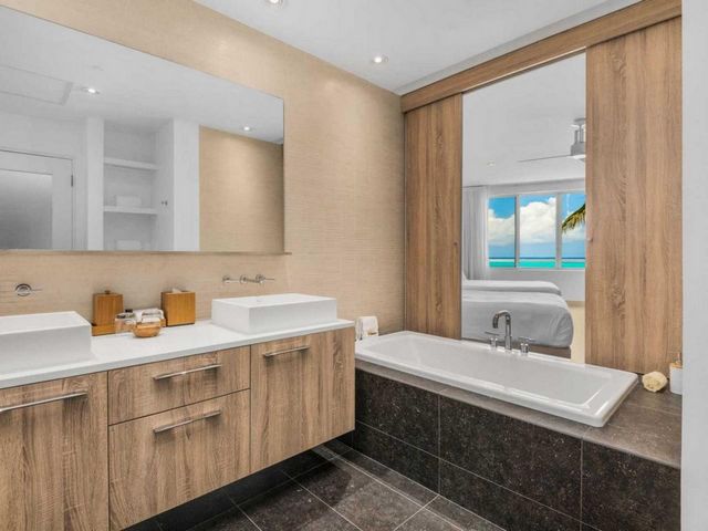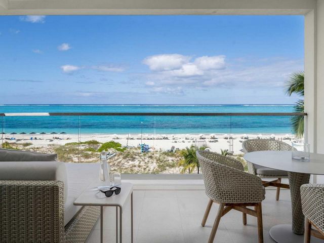 Enjoy this rare opportunity to own a 2 bedroom condo at Wymara with direct sunset views. This luxurious Wymara beachfront condo boasts two separate rental units with spacious living areas, large windows and sliding doors to take advantage of the beautiful views of Grace Bay. The bedrooms are fitted with comfortable king-size beds, and en suite bathrooms with luxurious spa-like amenities. The Resort features a number of on-site amenities such as an infinity-edge swimming pool, a hot tub, a fitness center, a spa, and private beach access. Wymara Resort has become known to have the best culinary experience with their onsite offerings at Indigo and Blue Water Bistro and is continuously recognized by The Forbes Travel Guide for outstanding service.