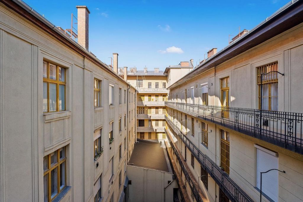 - Alarm Unique loft apartment with wonderful, large atelier windows and artsy vibes for sale in Nagymező street. The apartment is situated on the top floor of a beautiful, renovated building that was constructed in 1912, and it was the first 5-story building in Budapest. The building was owned by the art collector Lajos Ernst and designed by Gyula Fodor, it was a unique building that included Ernst’ art collection as a museum and also housed a cinema on the ground floor. It currently houses the Robert Capa Contemporary Photography Center. The apartment is located at the quiet back-side of the building, on the 4th and top floor (only the front of the building is 5-story tall). It is a newly renovated, airy loft apartment with large living room and open plan, modern kitchen, a spacious bedroom with a walk-in wardrobe, entry hall with utility wardrobe and bathroom with shower. The property is really sunny: its best features are the large atelier-like windows that let in so much light! The apartment has been designed by an interior designer and it just undergone a deep renovation: new electrical wiring and plumbing, new flooring, new wallpapers, brand new kitchen, new bathroom, new lights, custom-designed and custom-made built-in furniture. It comes fully furnished and fully equipped with high-end appliances (washer, tumble dryer, dishwasher, fridge, TV, etc,), and it has a smart security system and air-conditioning. The purchase price includes all of the furniture and appliances. About the neighborhood: Located in District 6, only a few steps away from UNESCO Heritage Andrássy, Nagymező street is also sometimes called the “Broadway of Budapest” because of its many theaters, cafes, restaurants and generally bohemian neighborhood. It is vibrant place and conveniently located close to public transport option (tram 4-6, metro line 1, several bus and trolley lines), but it’s also quite easy to walk to anywhere in downtown from here.